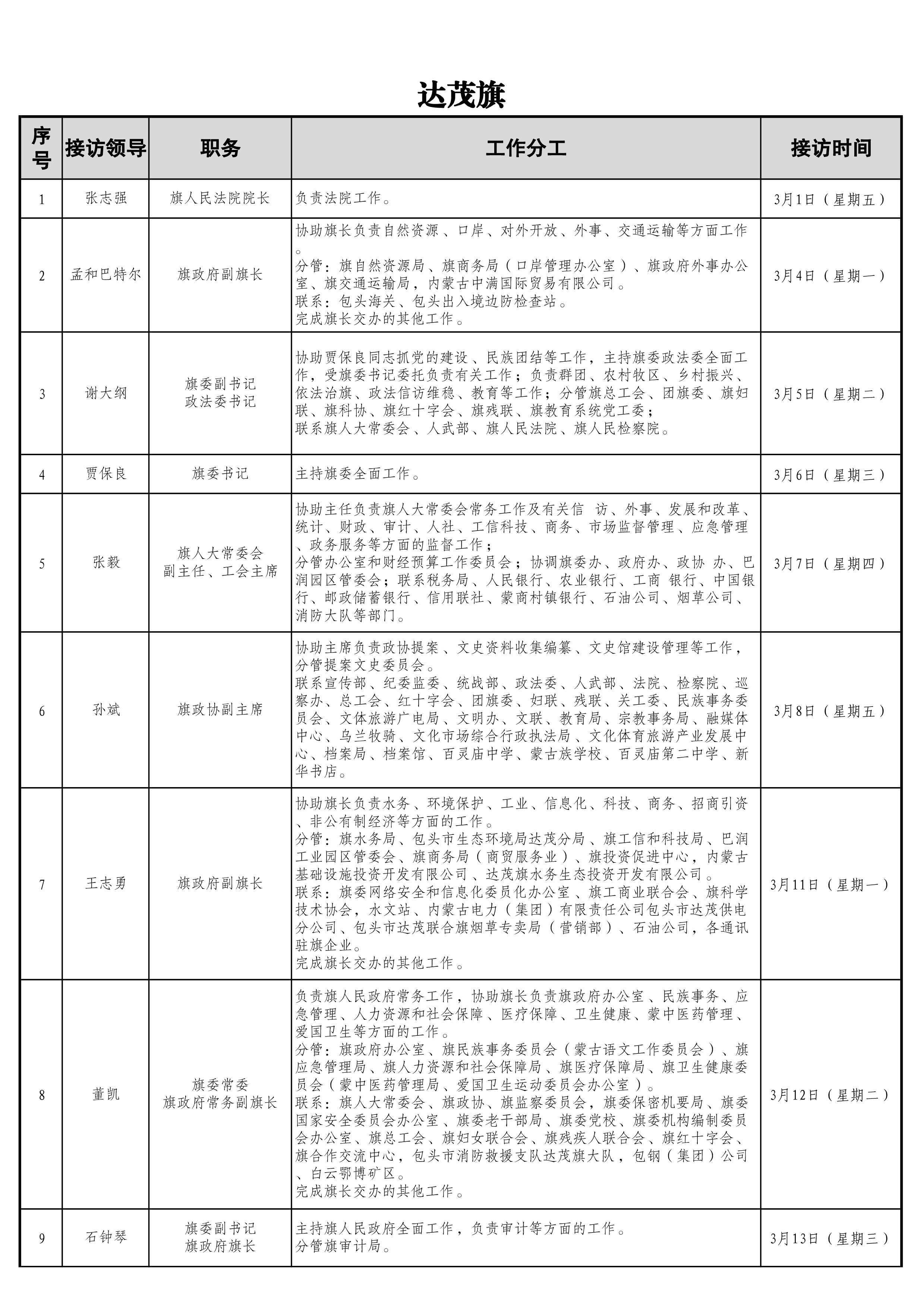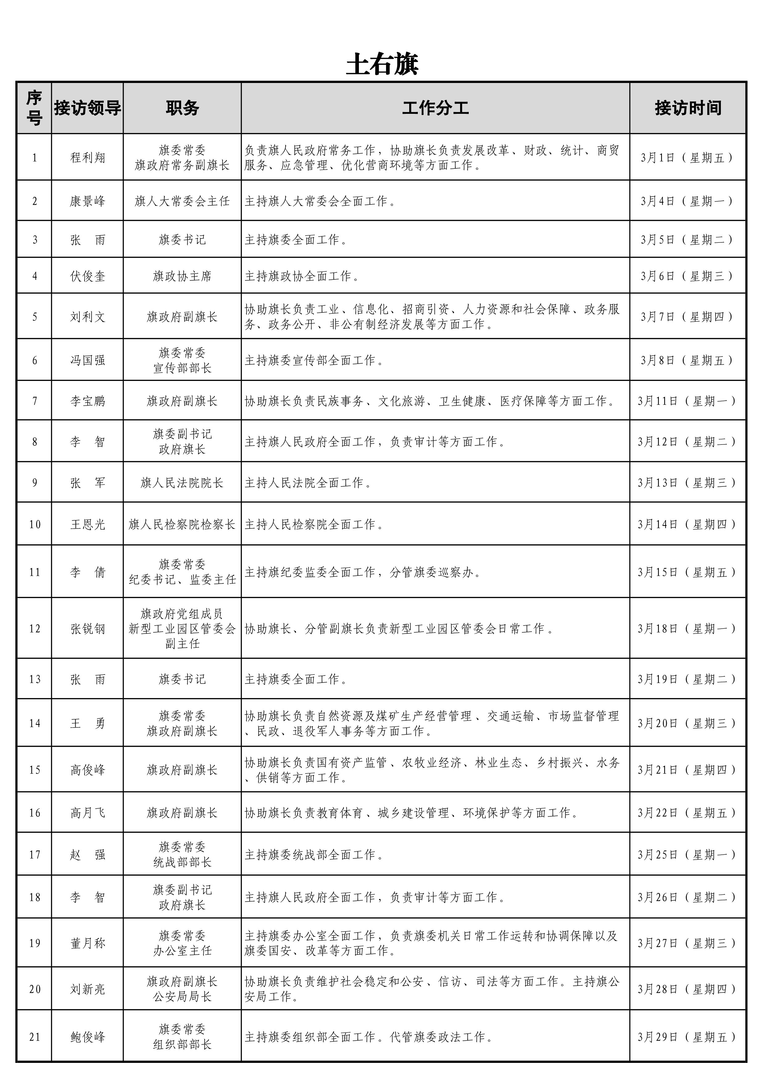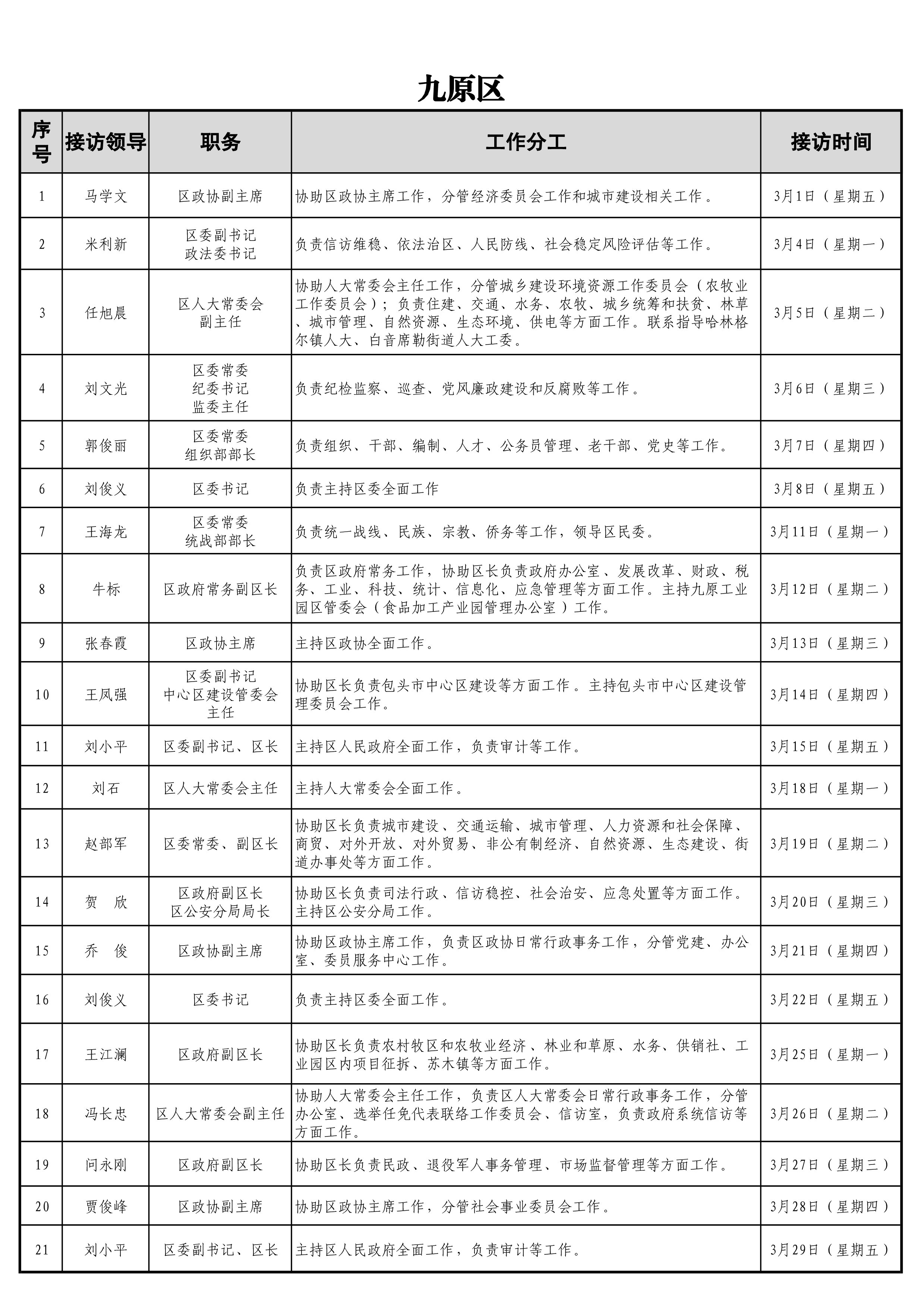 2024年3月份包头市各旗县区、稀土高新区领导干部接访日安排