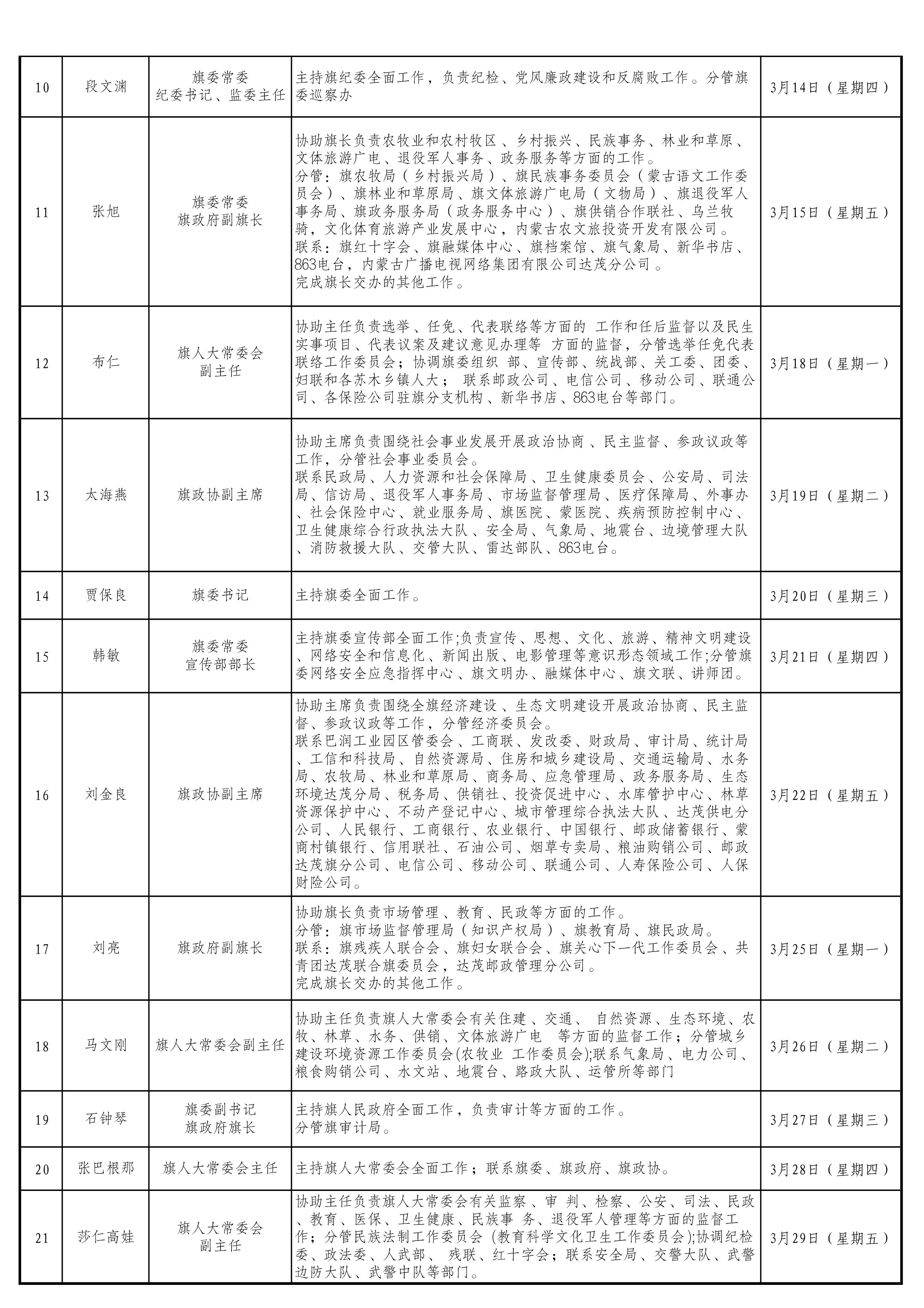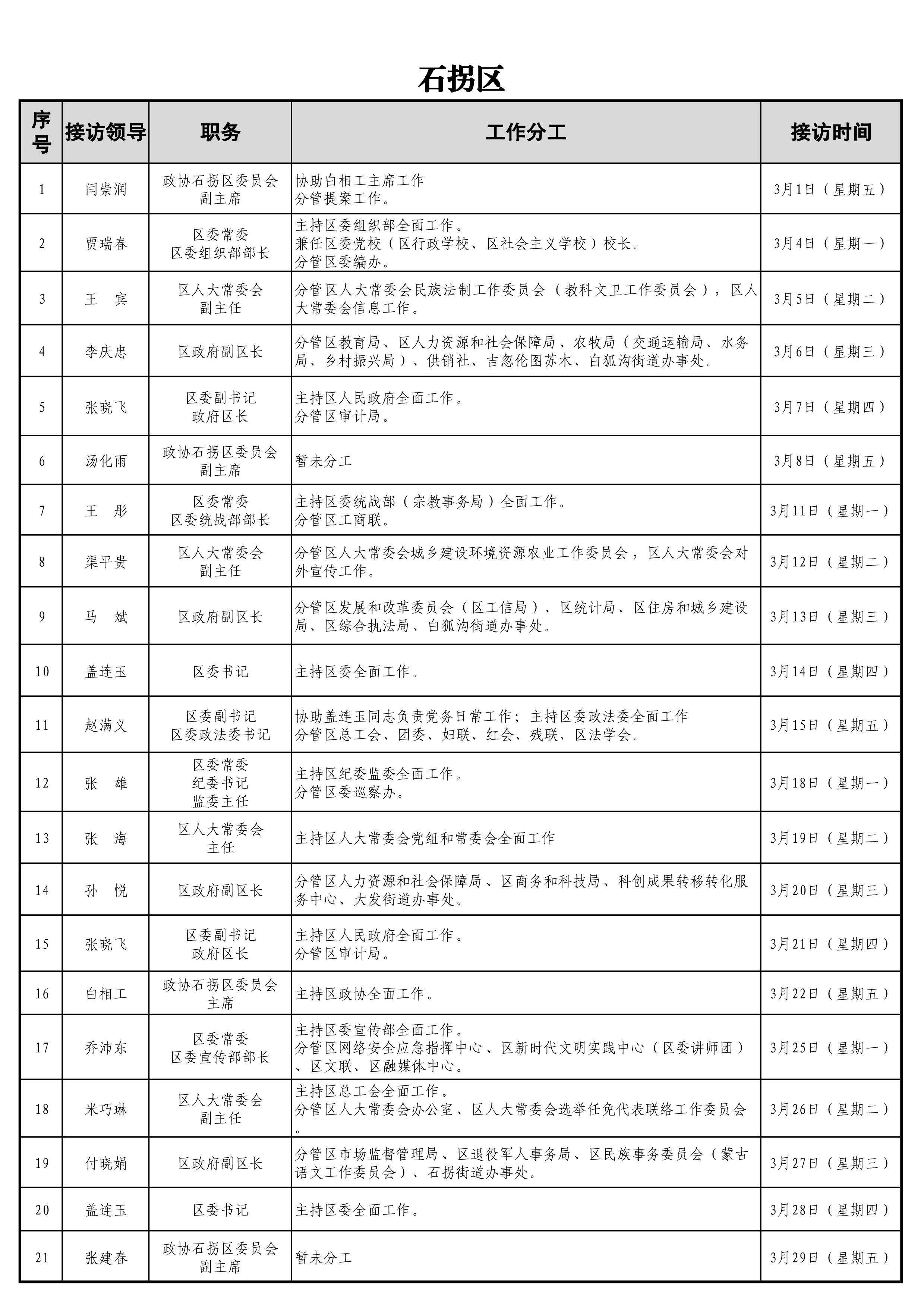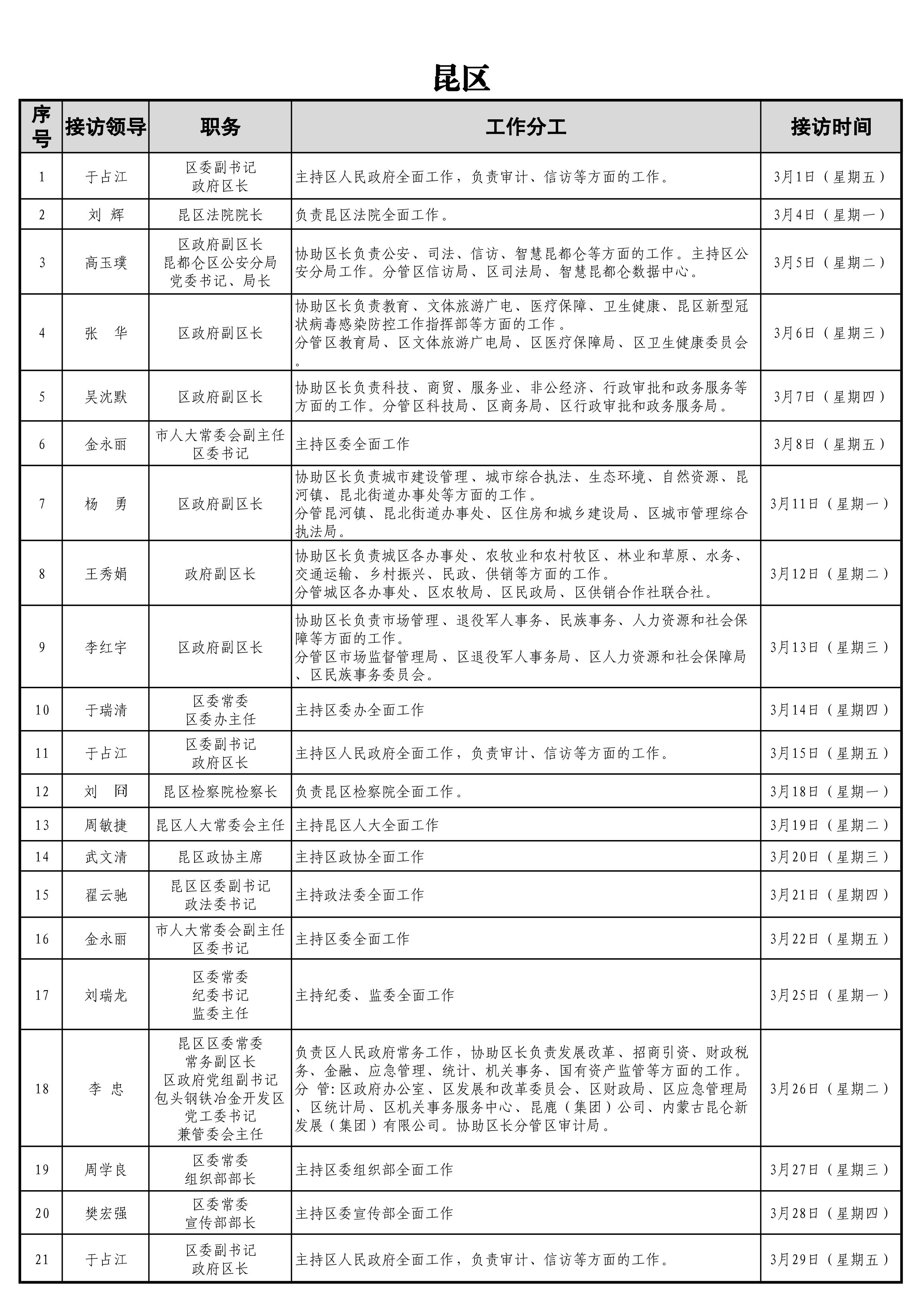 2024年3月份包头市各旗县区、稀土高新区领导干部接访日安排