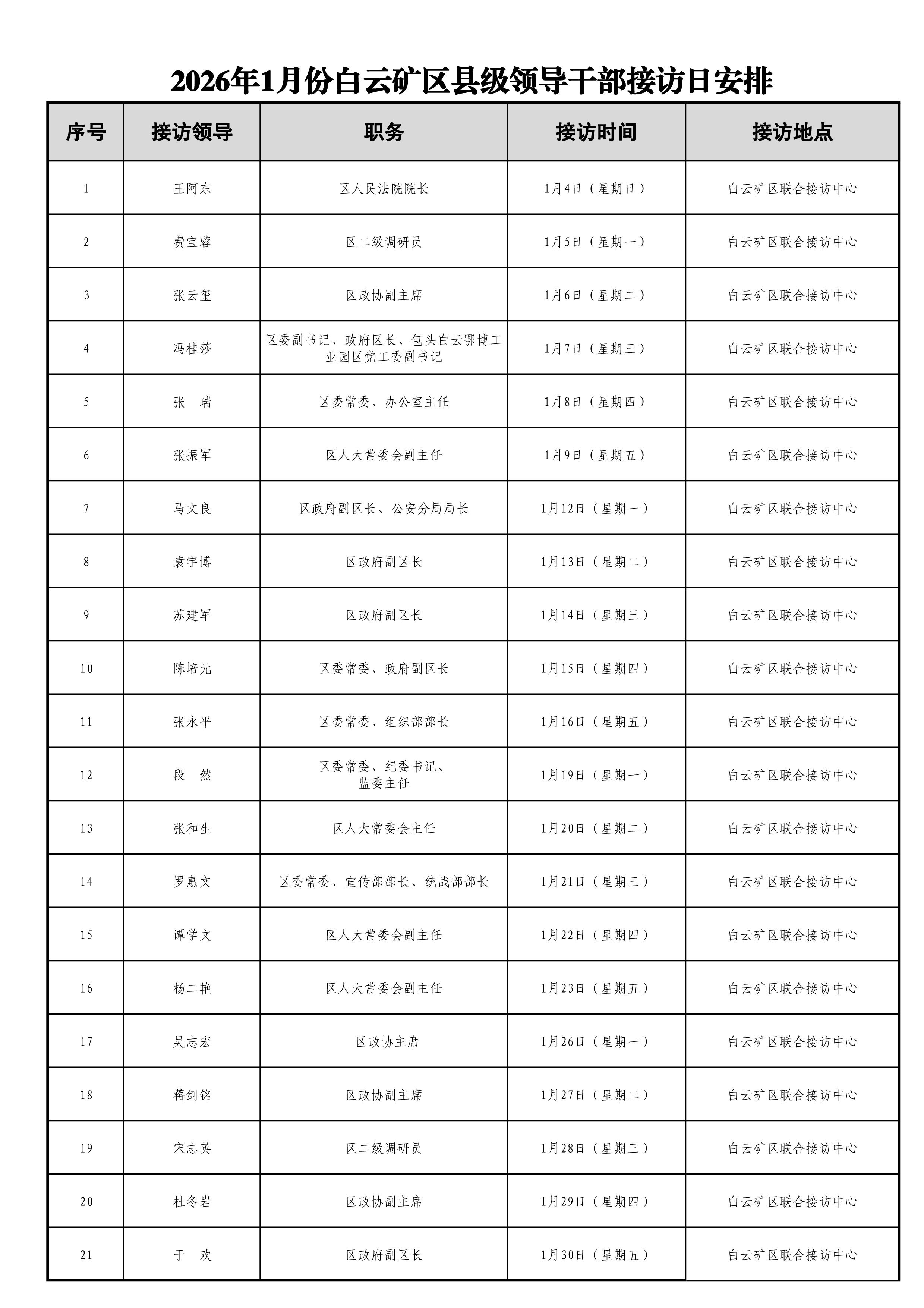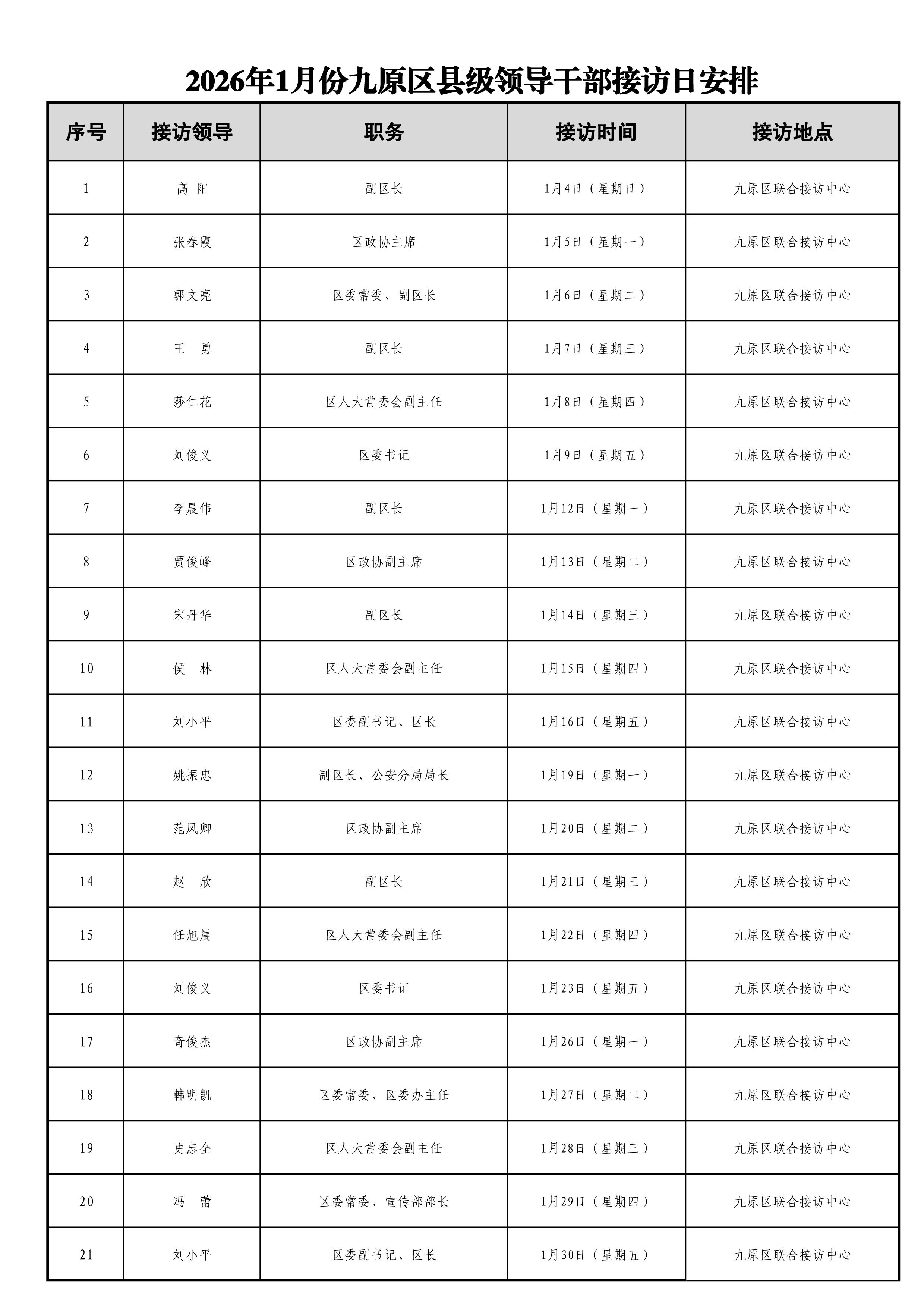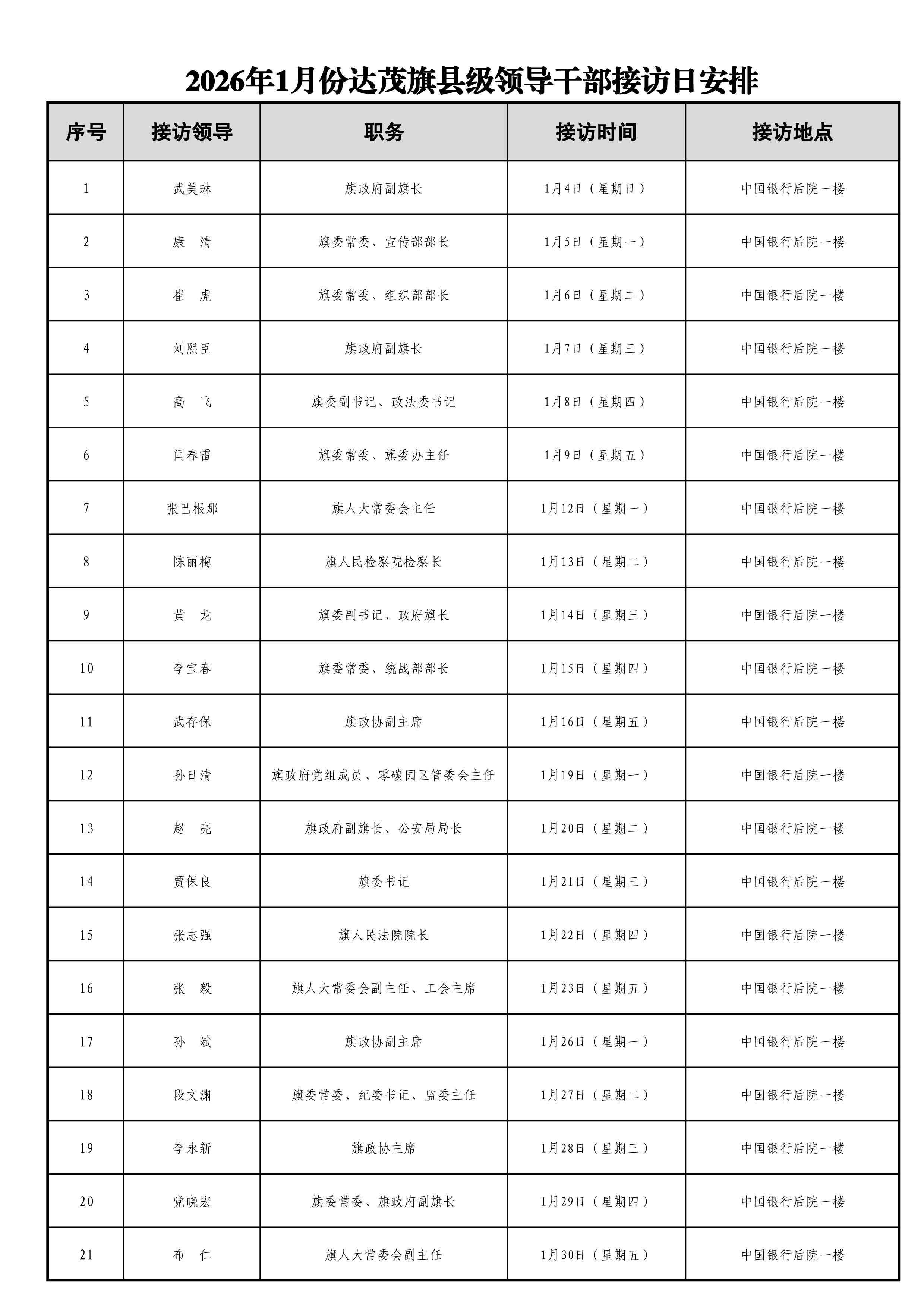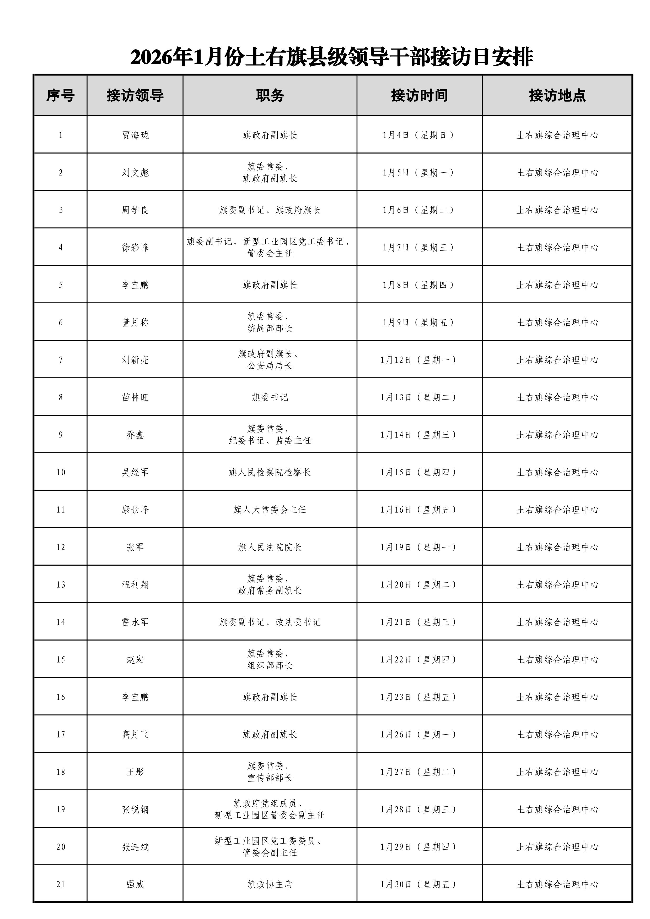 2026年1月份包头市各旗县区、稀土高新区领导干部接访日安排