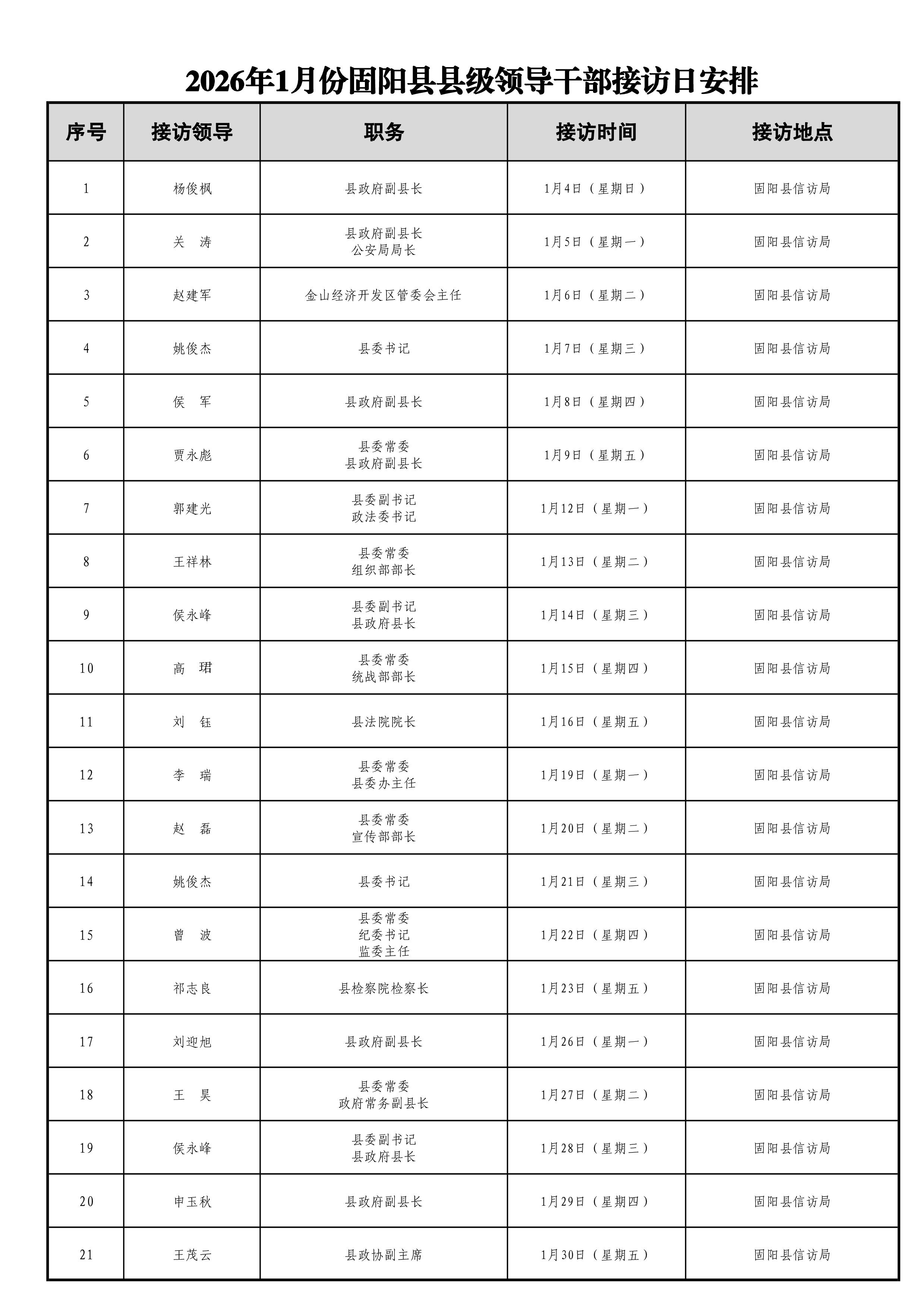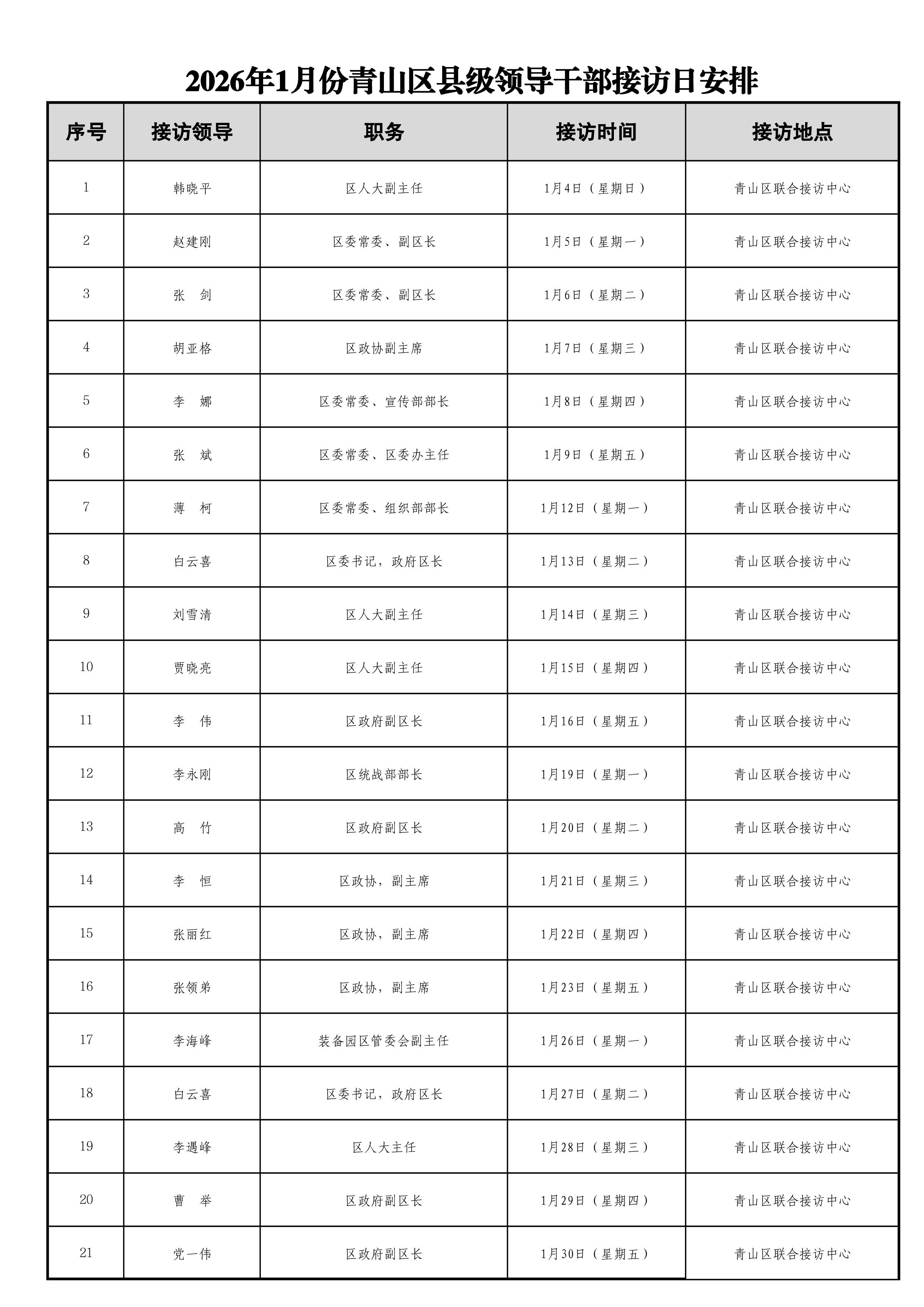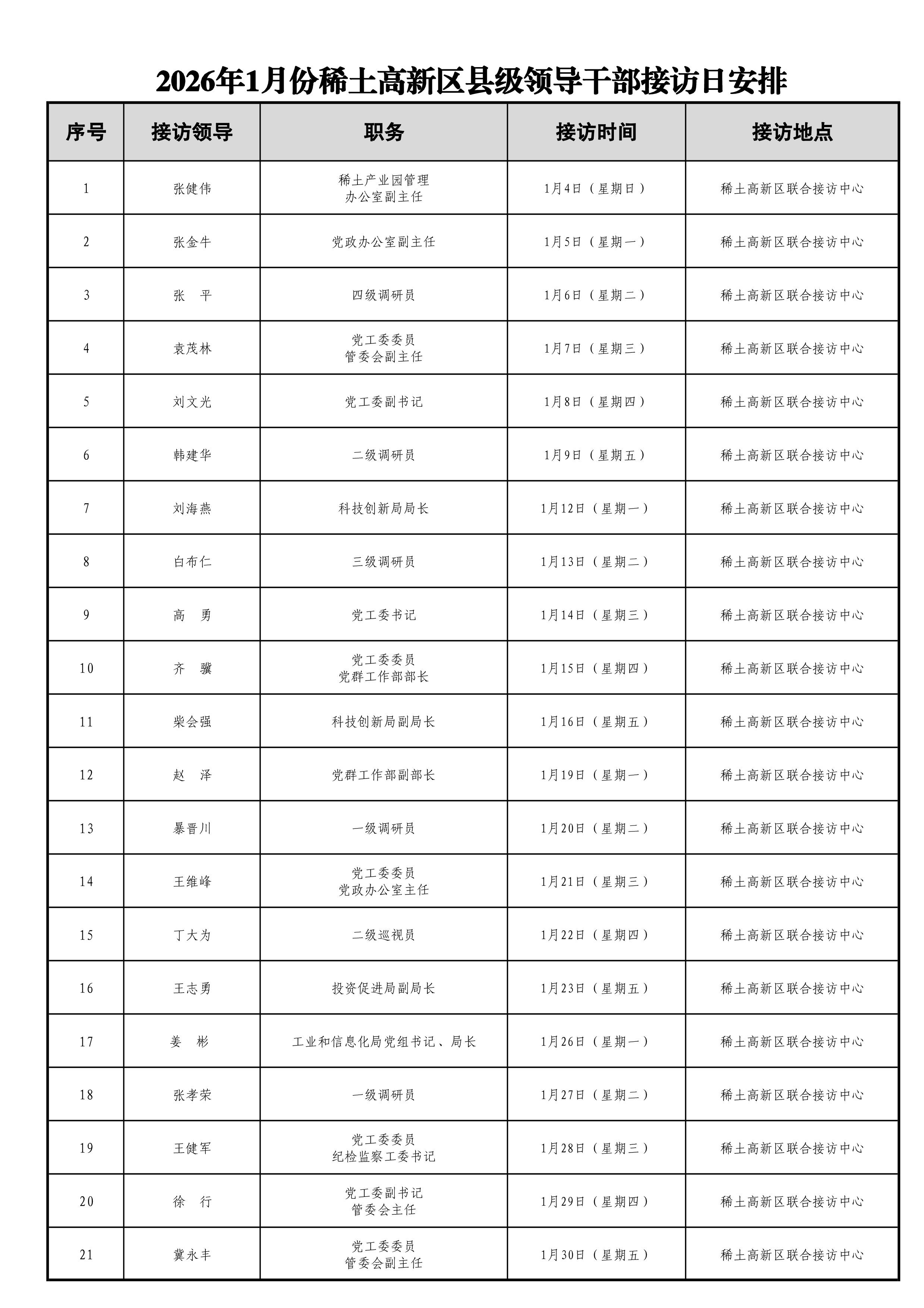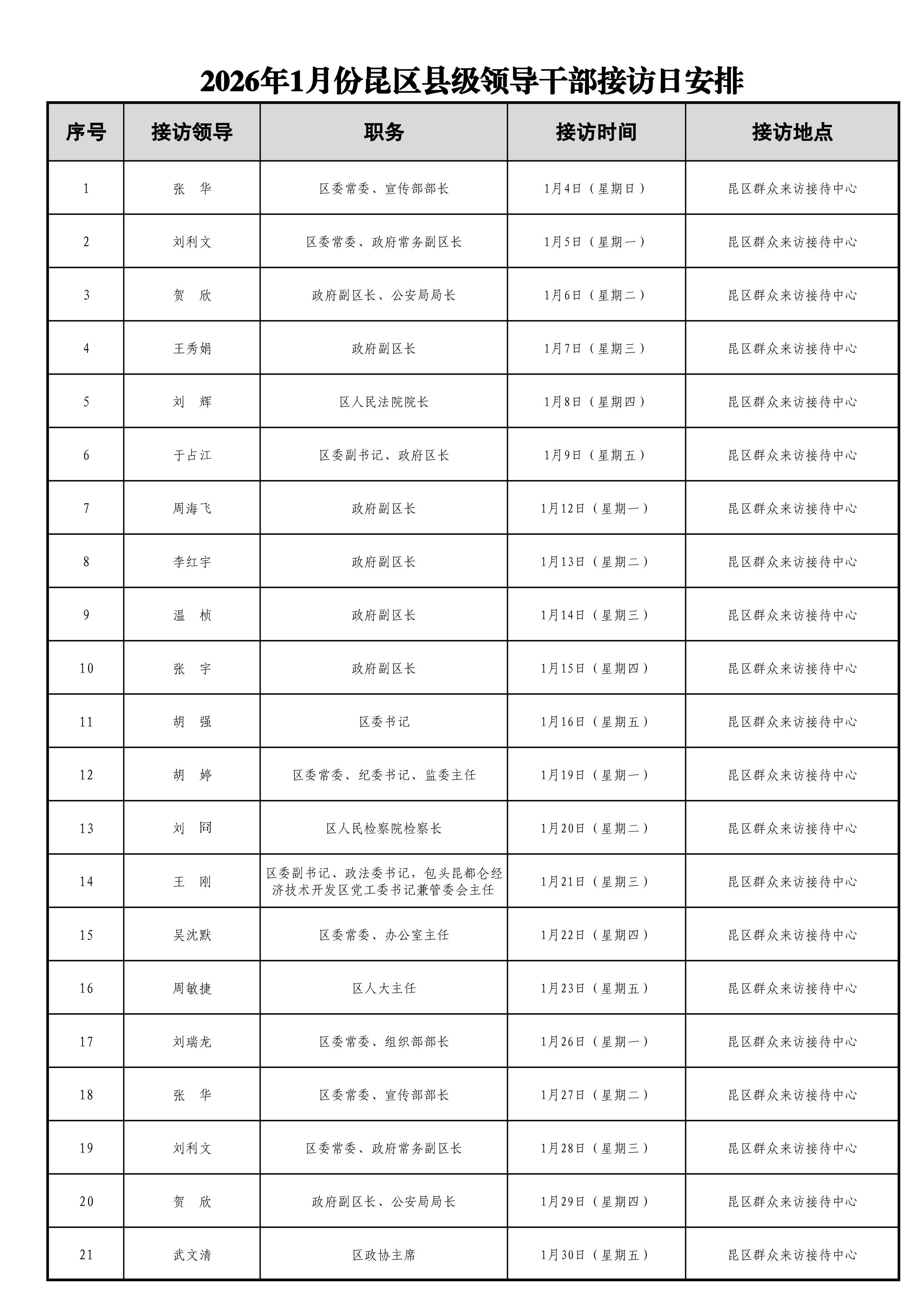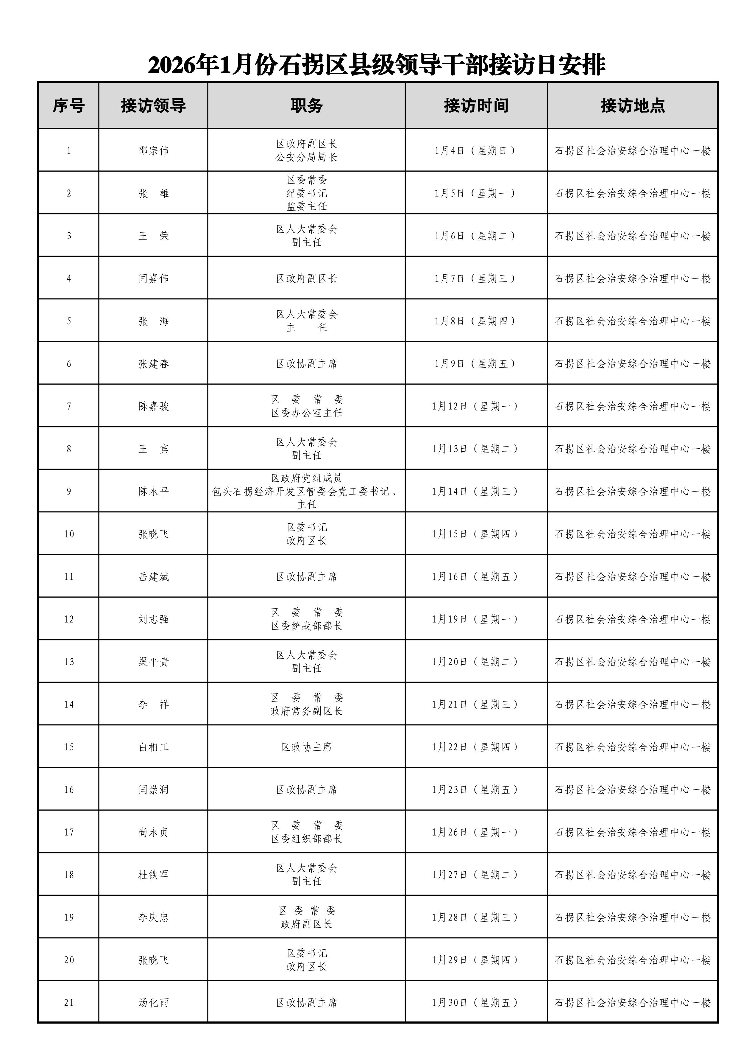 2026年1月份包头市各旗县区、稀土高新区领导干部接访日安排