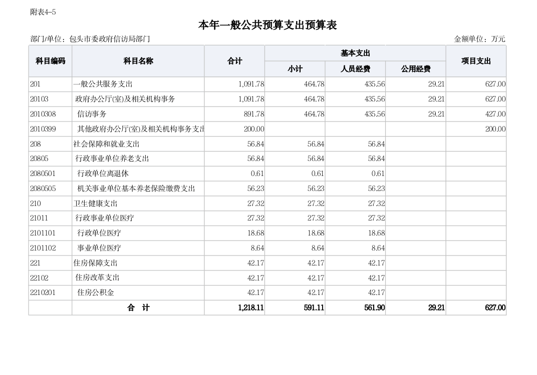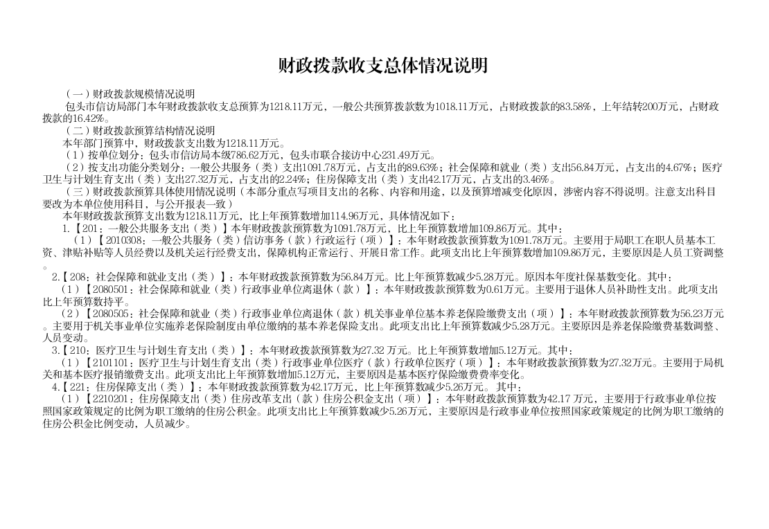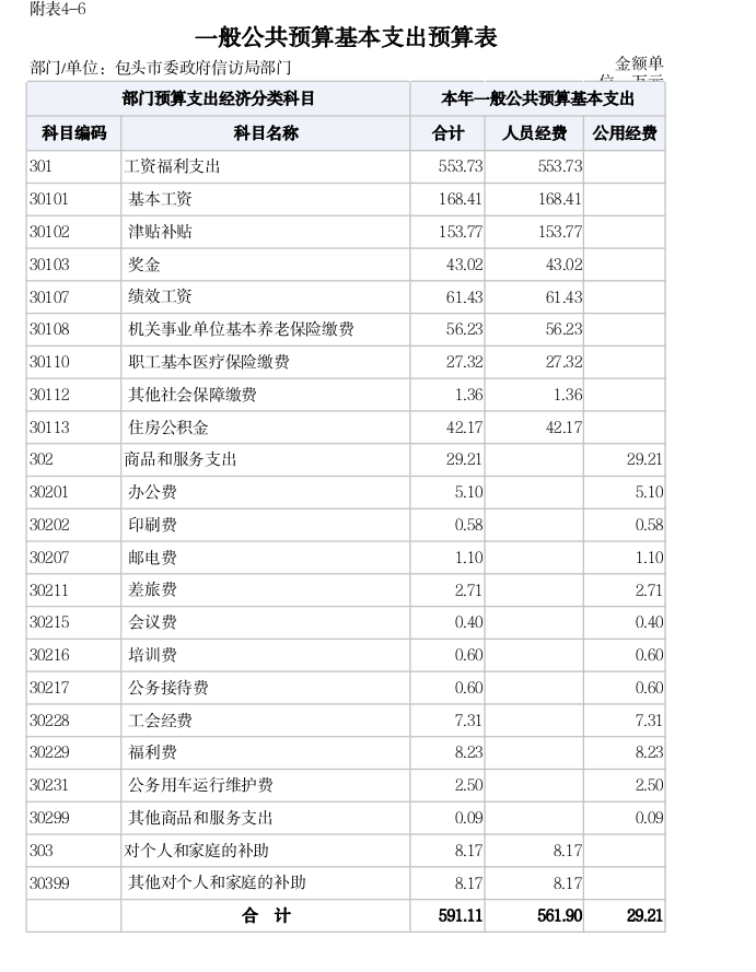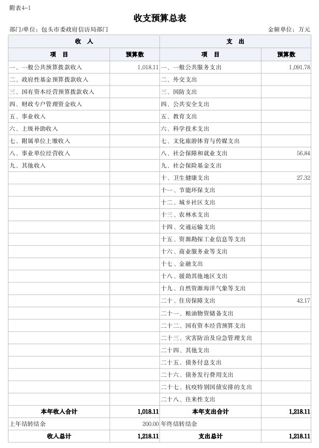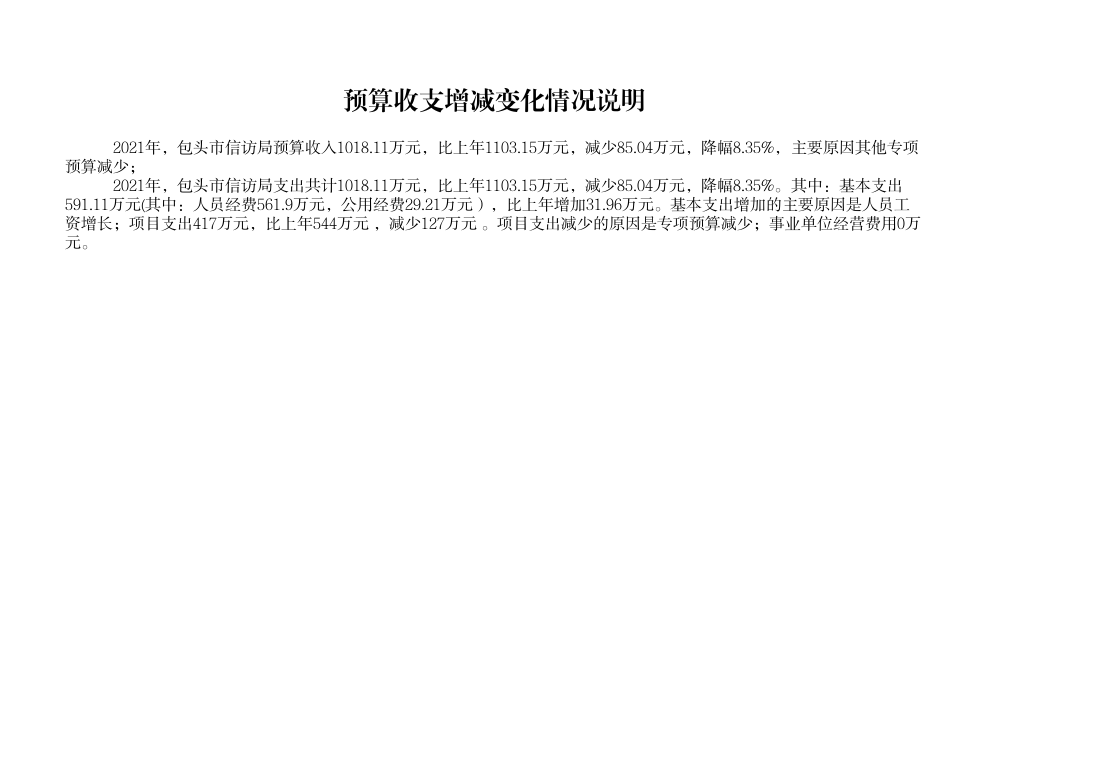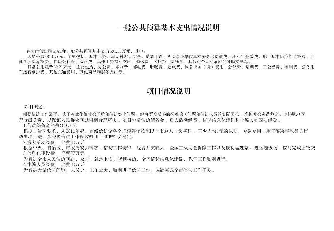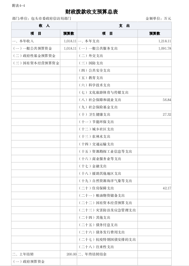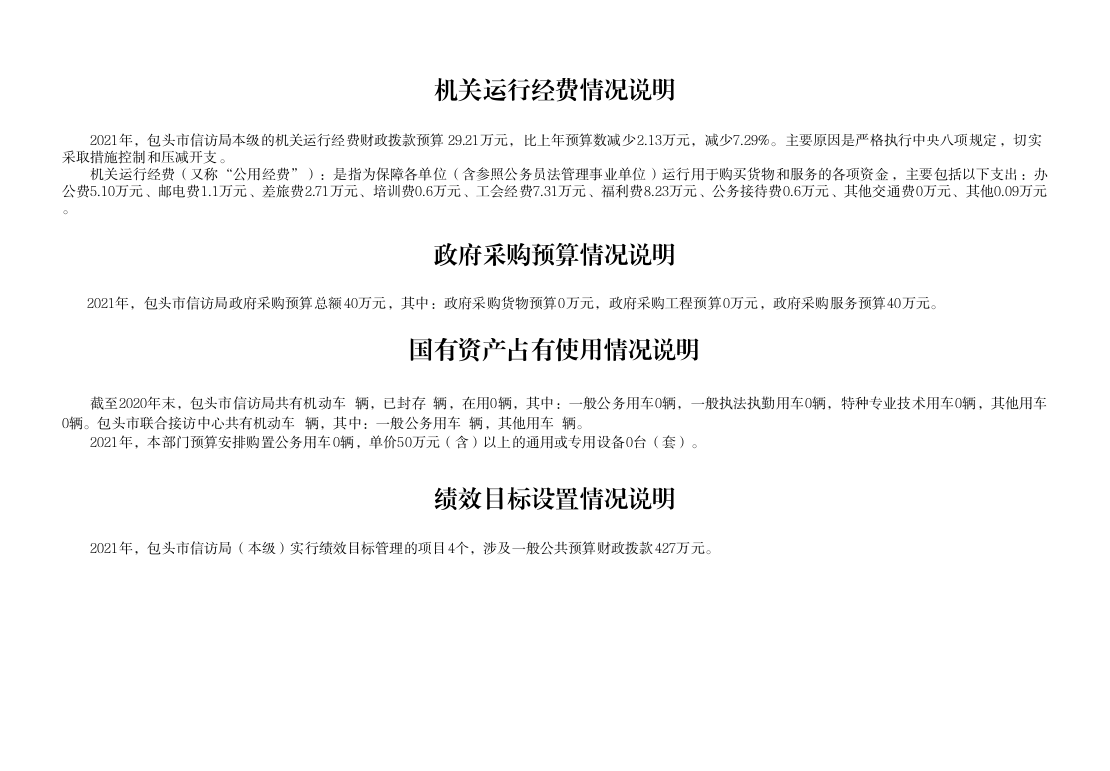 包头市信访局2021年度部门预算公开报告