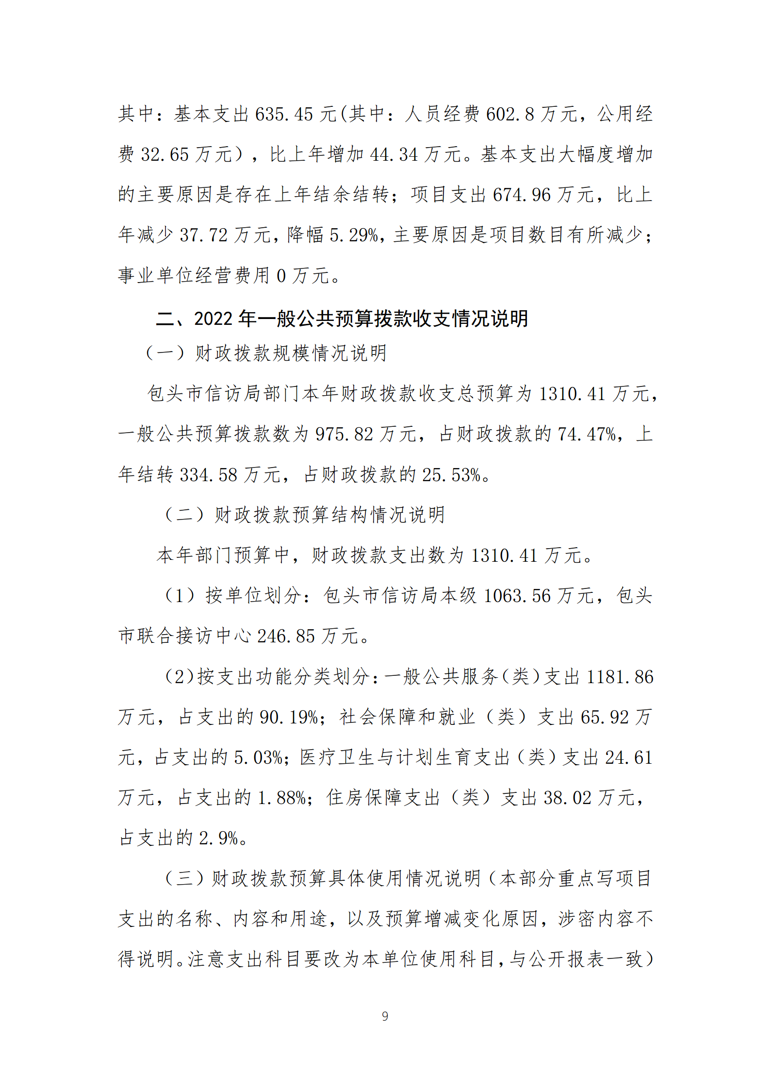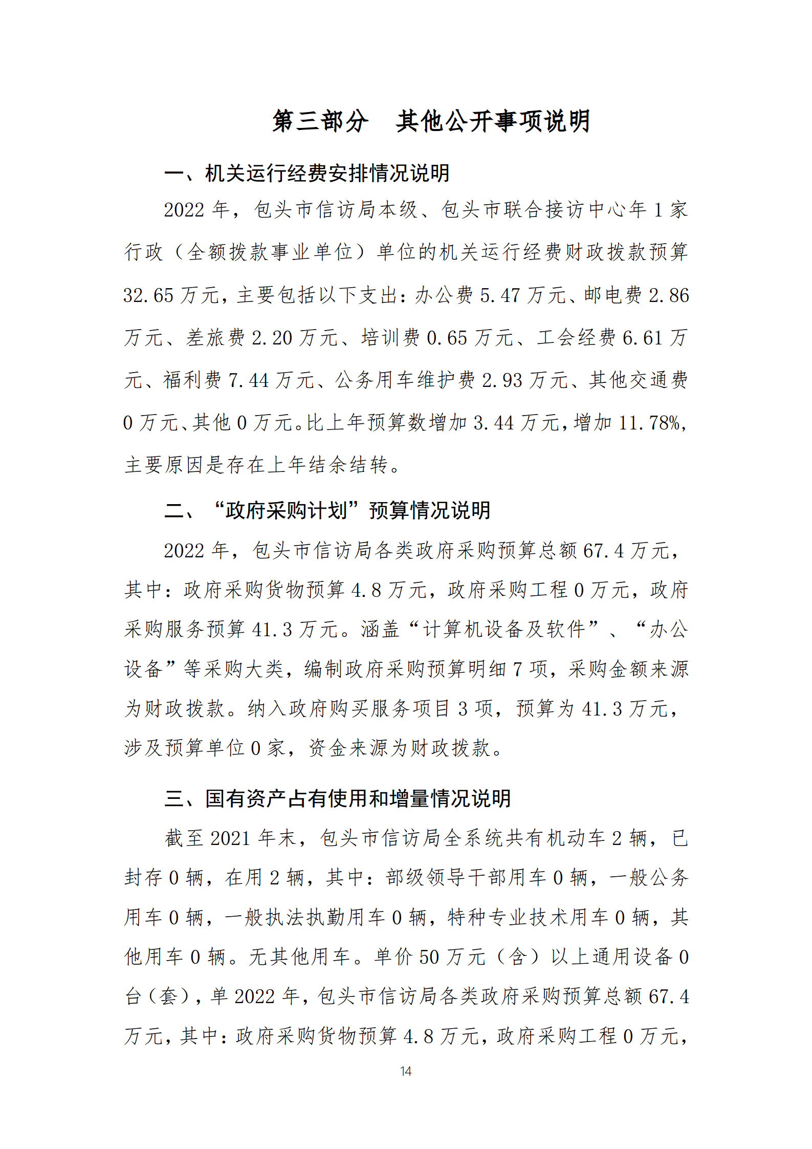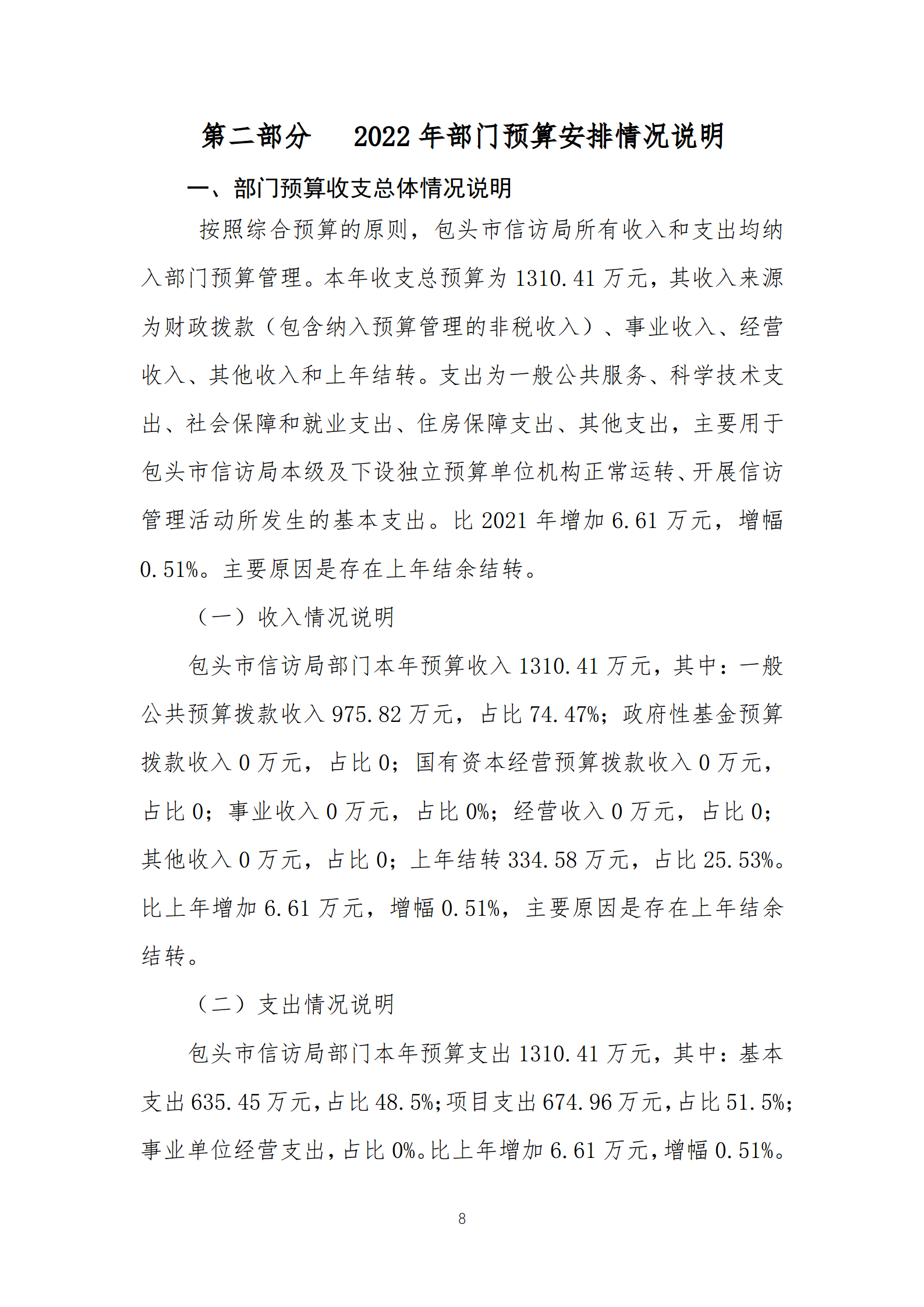 包头市信访局2022年度部门预算公开报告