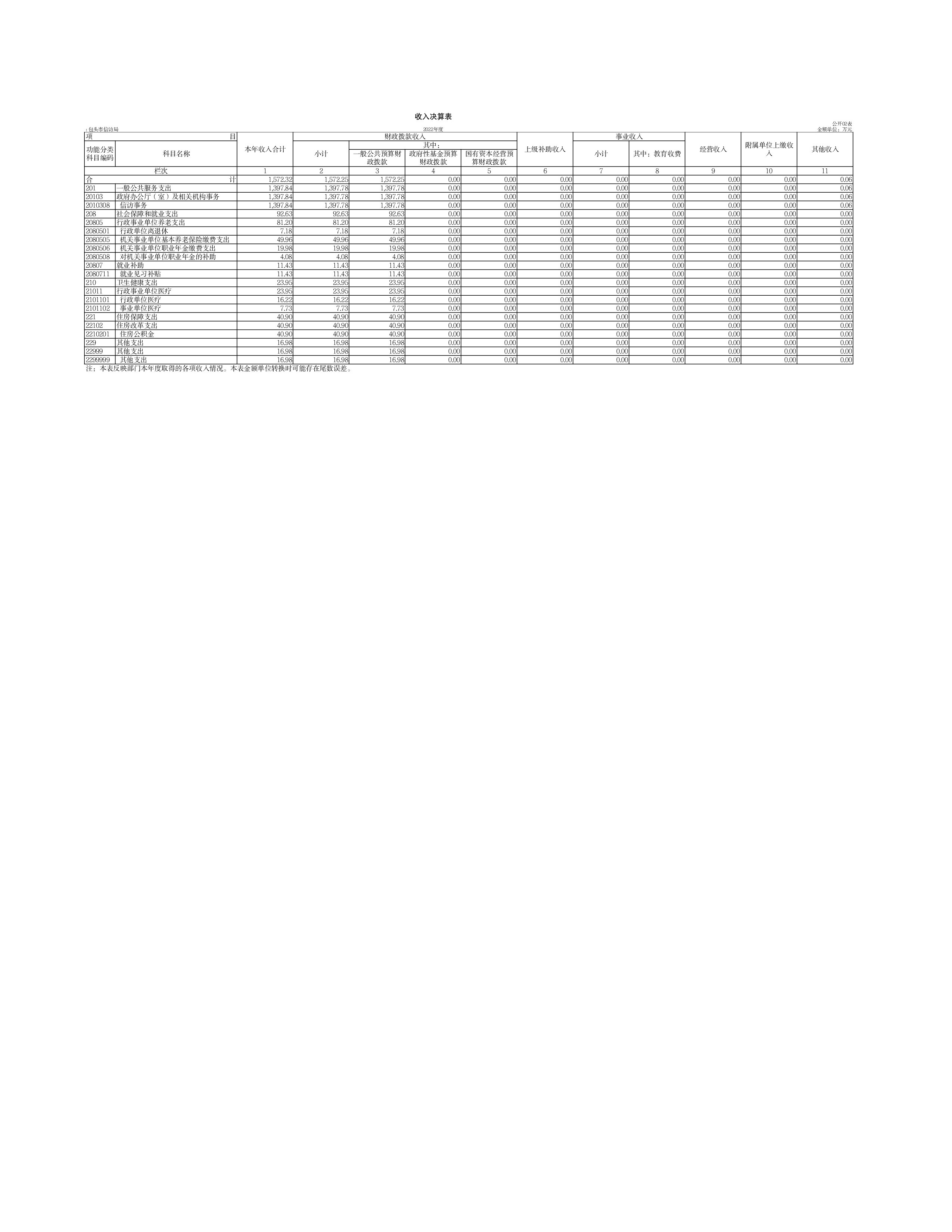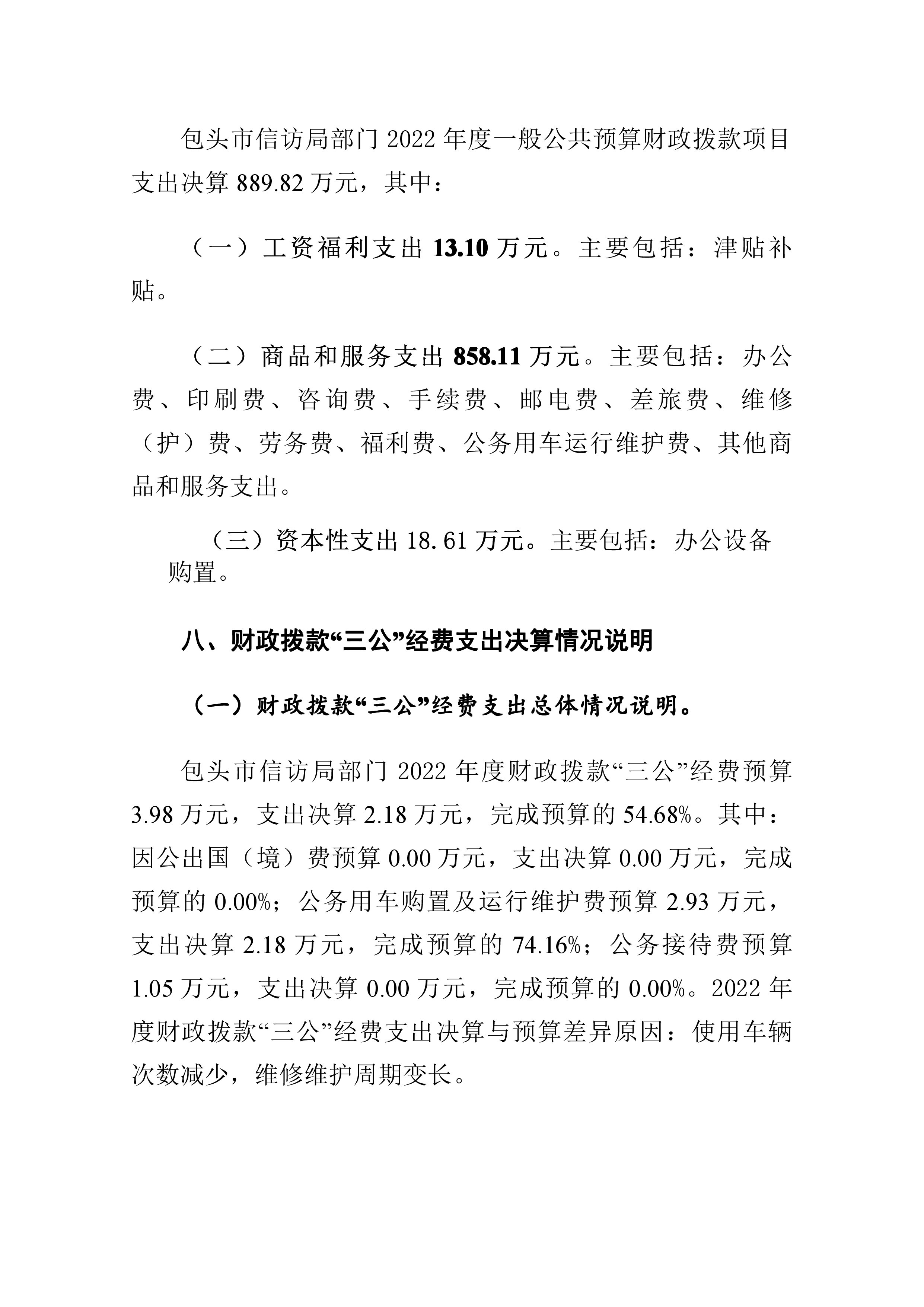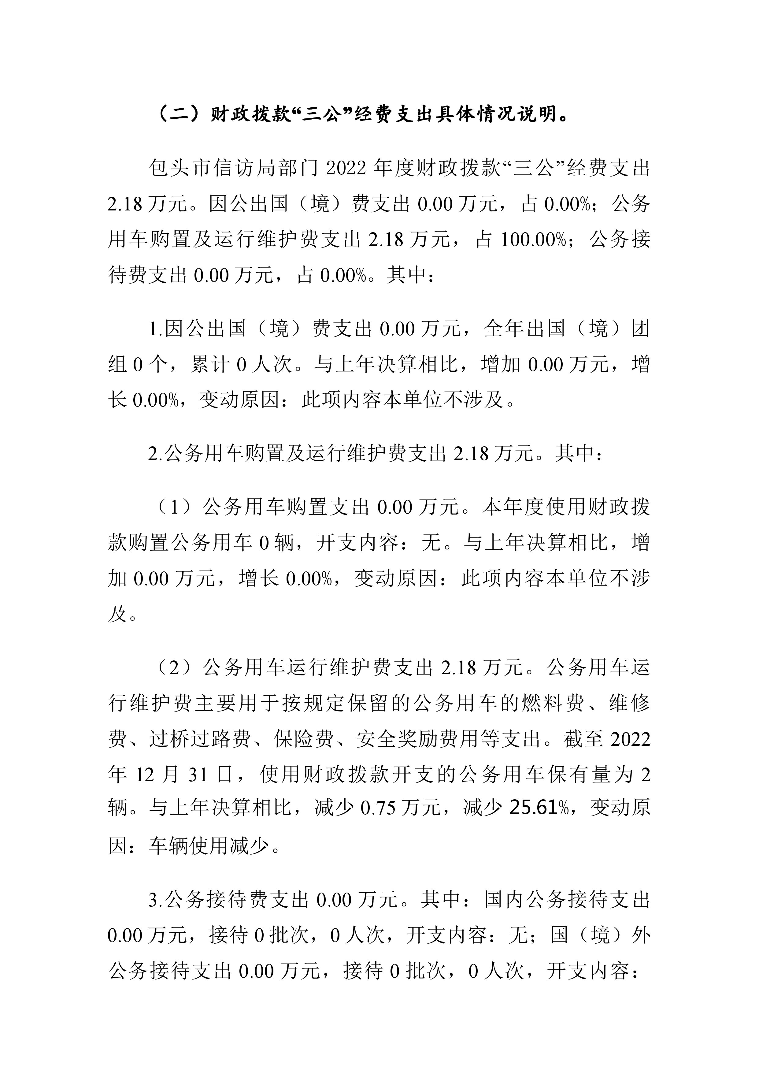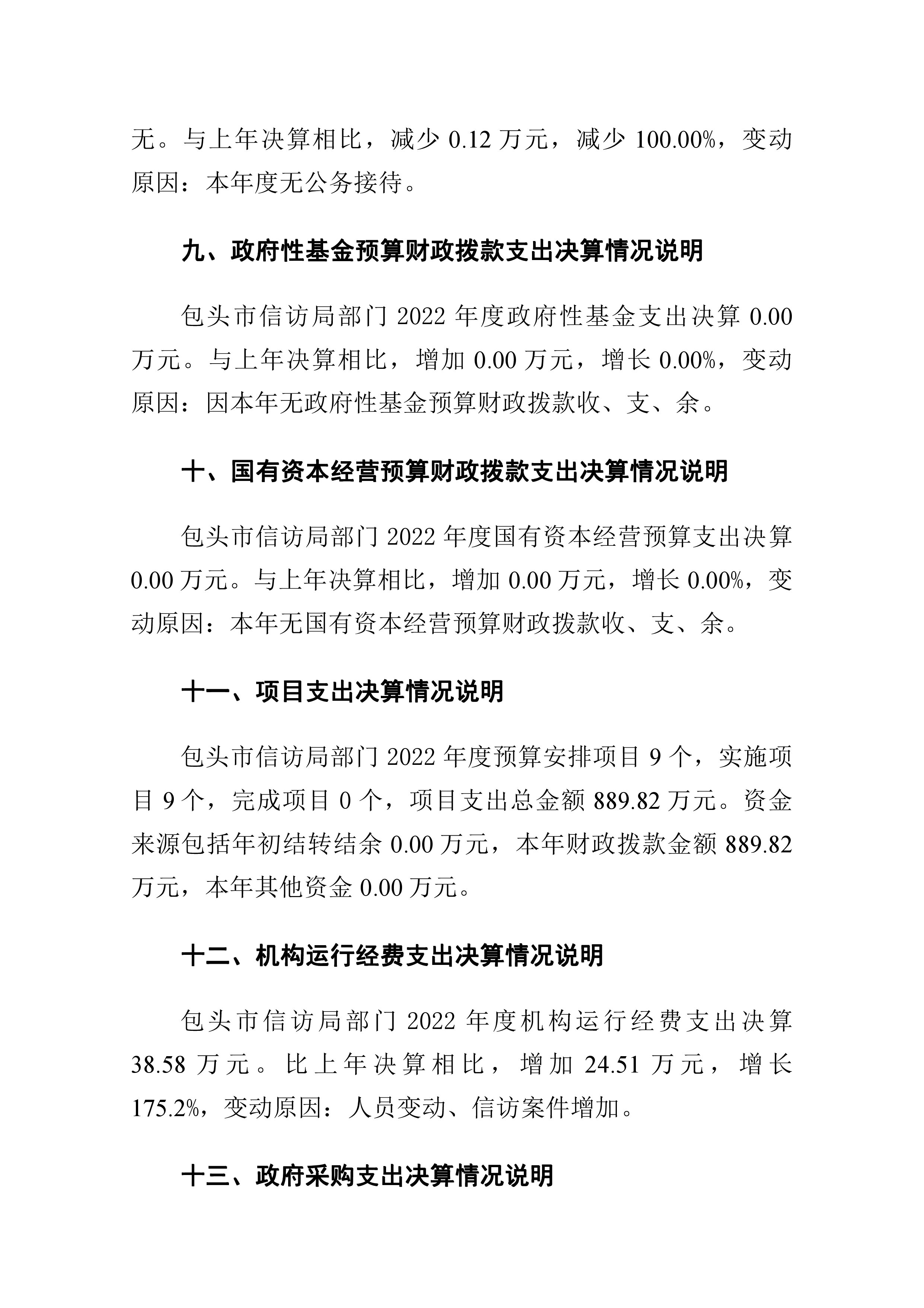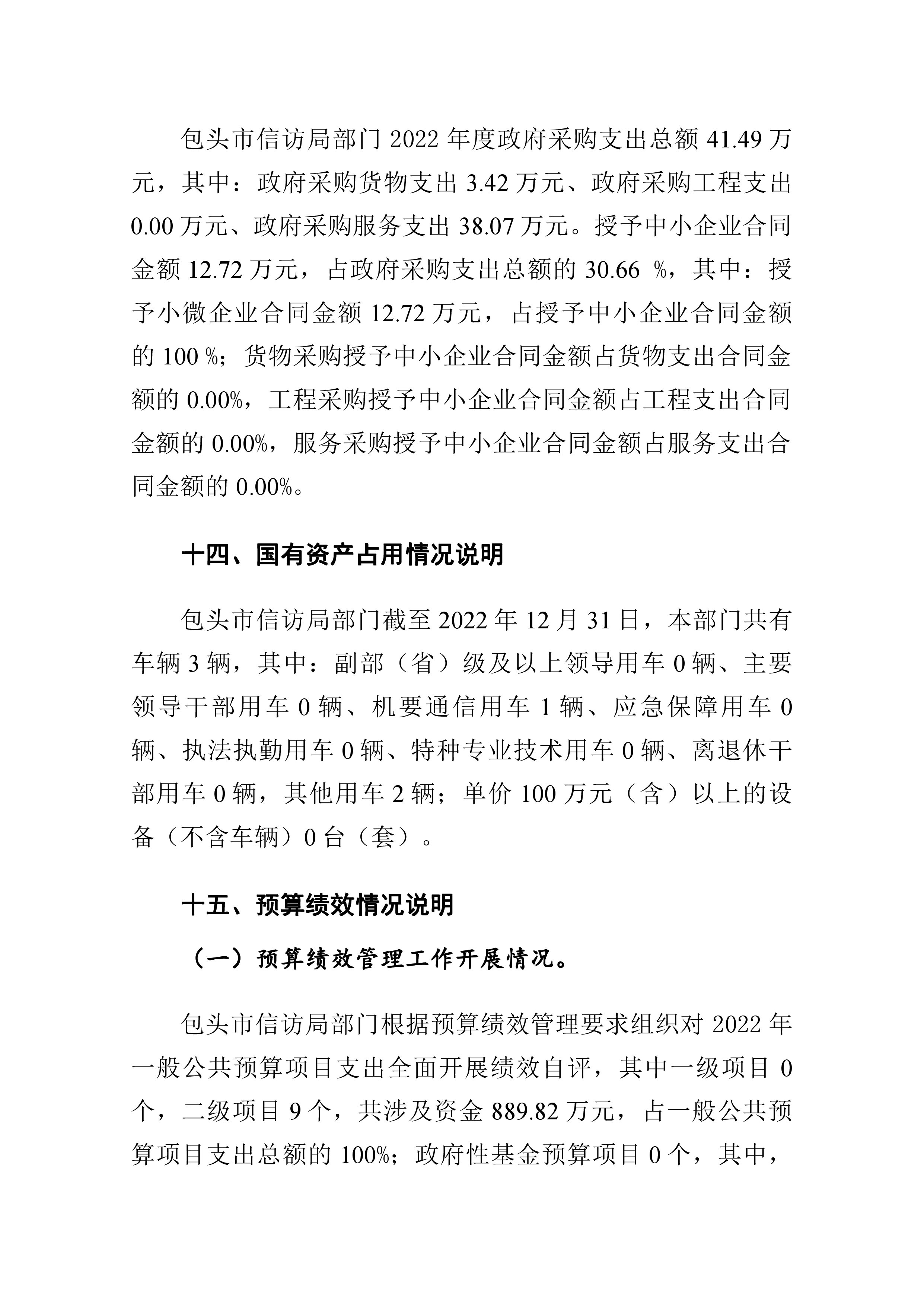 包头市信访局2022年度部门决算公开报告