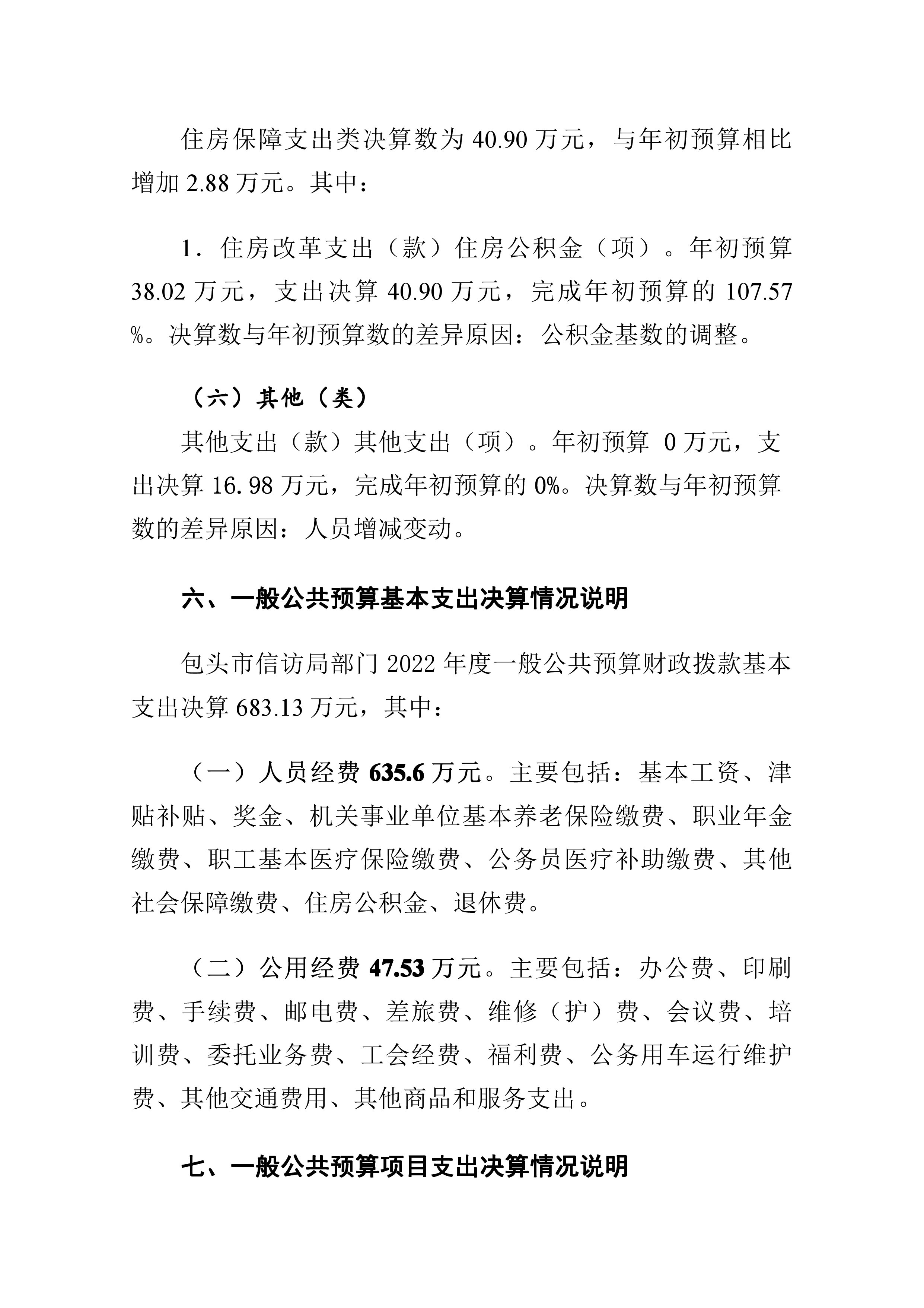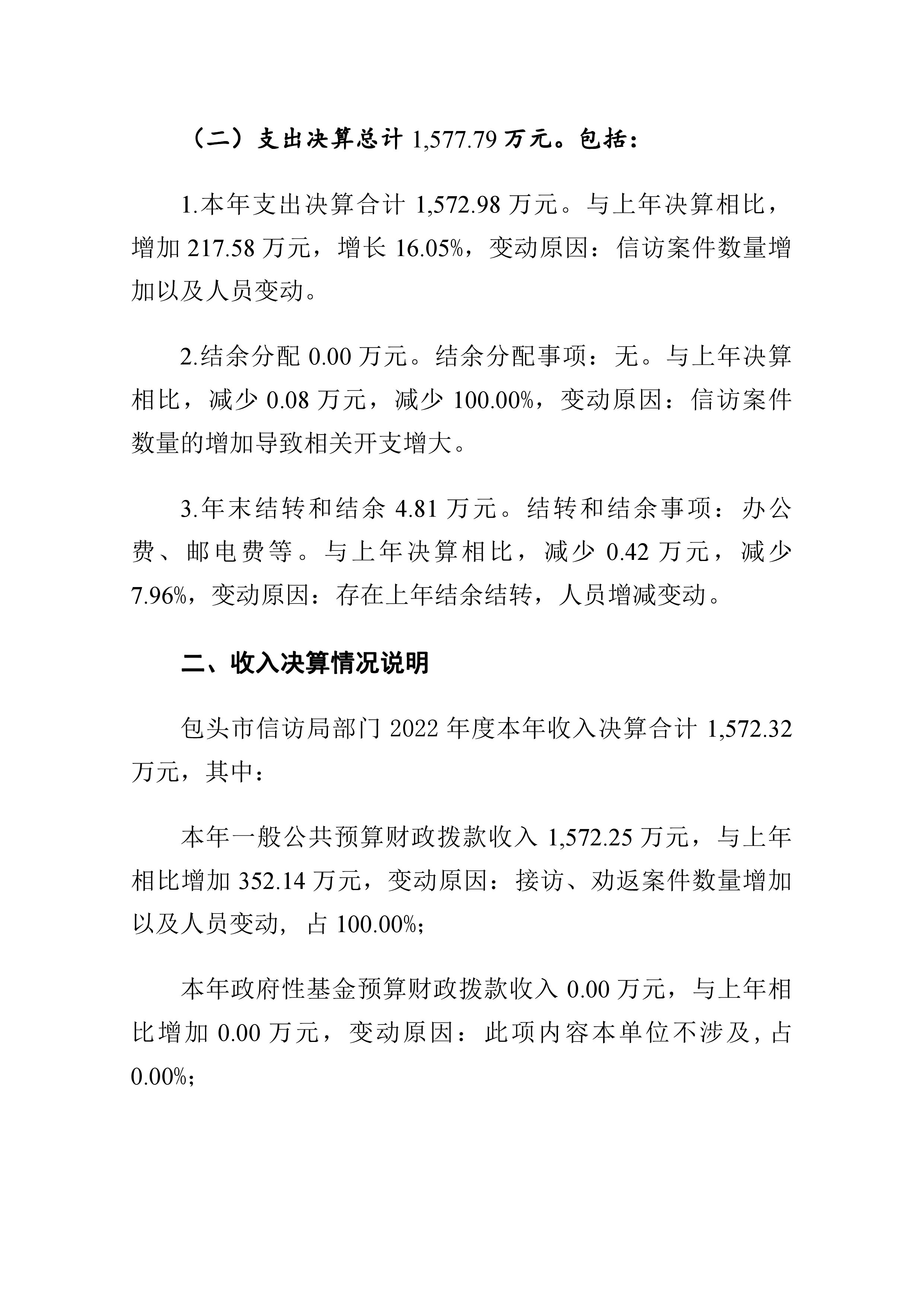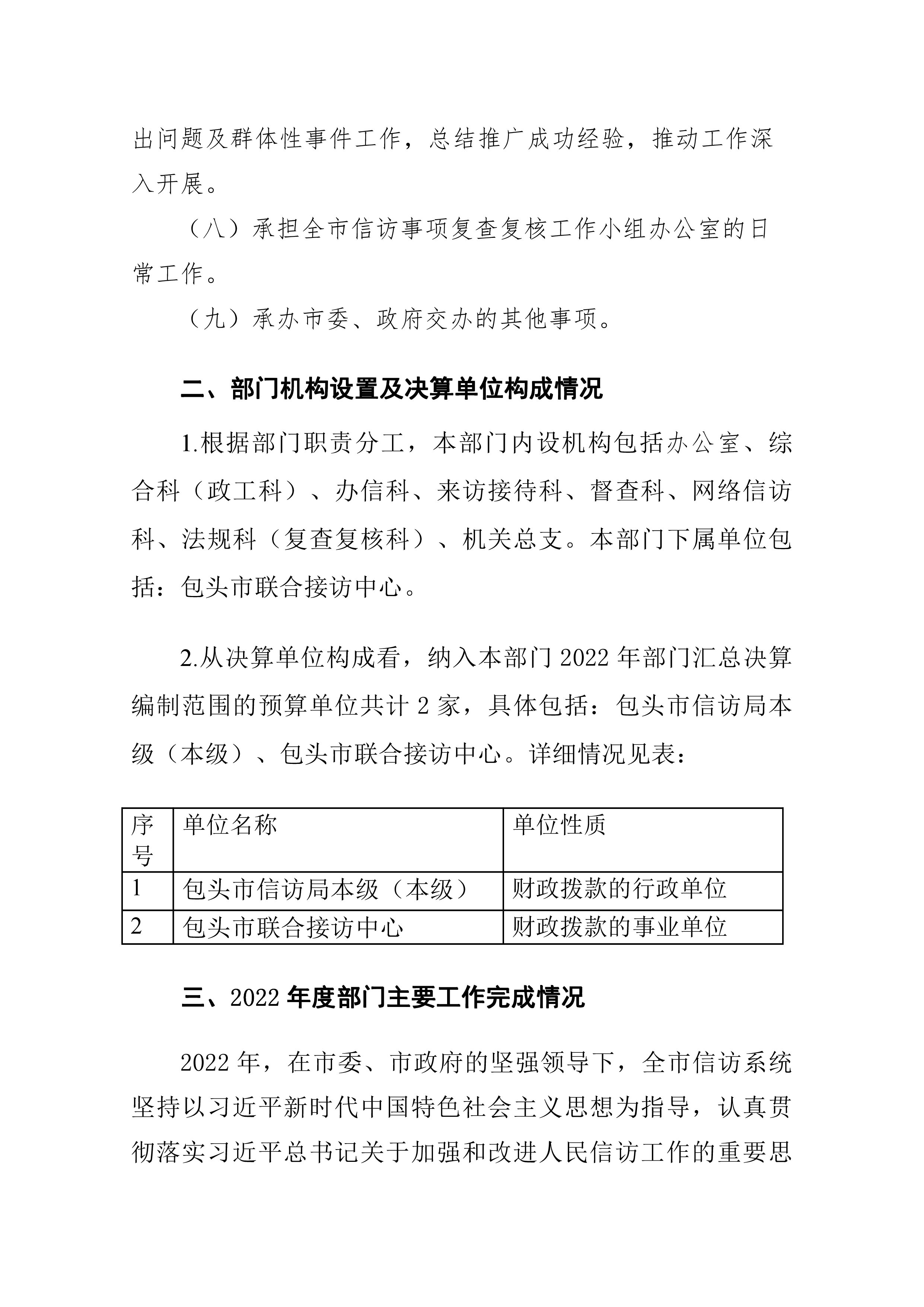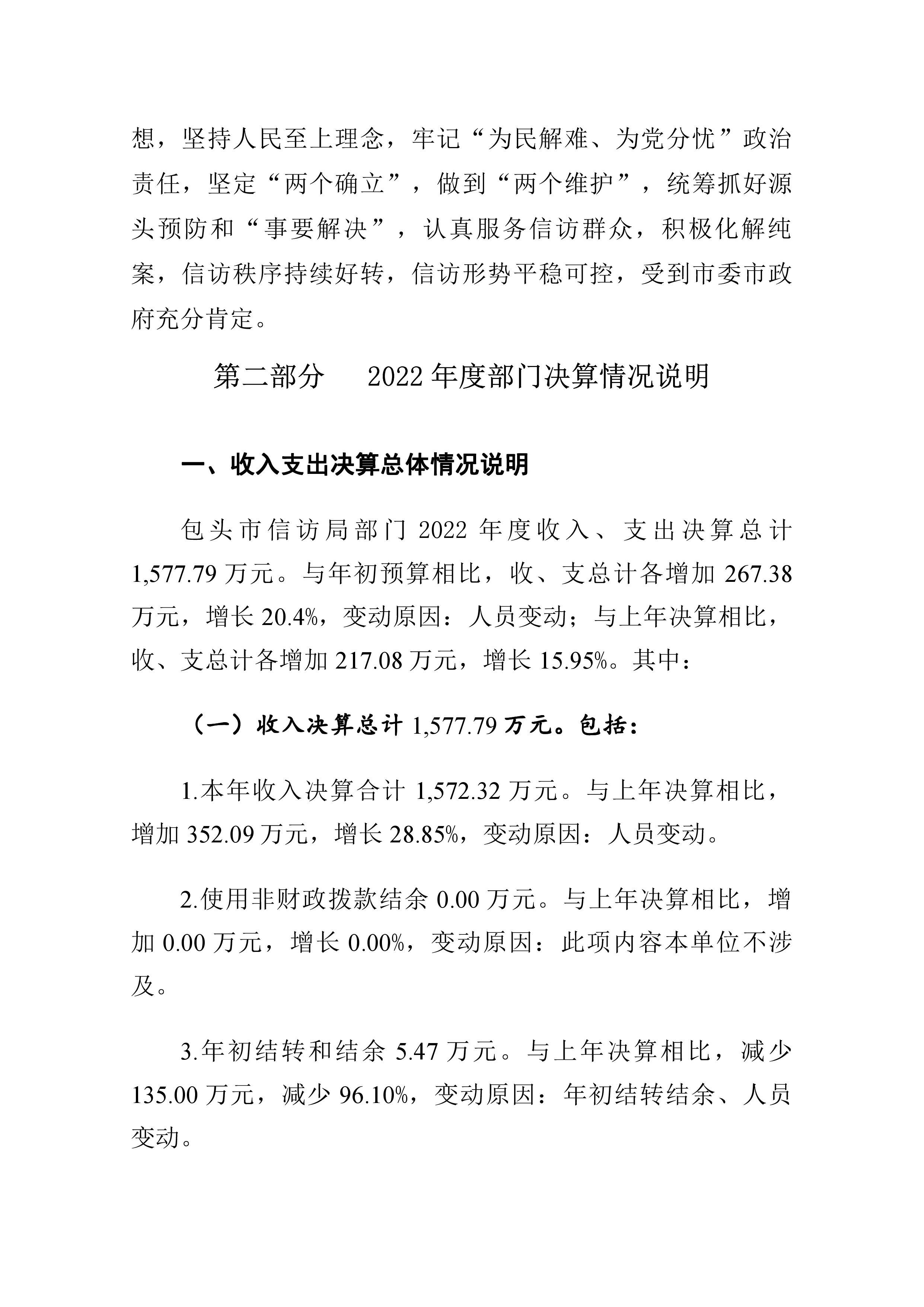 包头市信访局2022年度部门决算公开报告