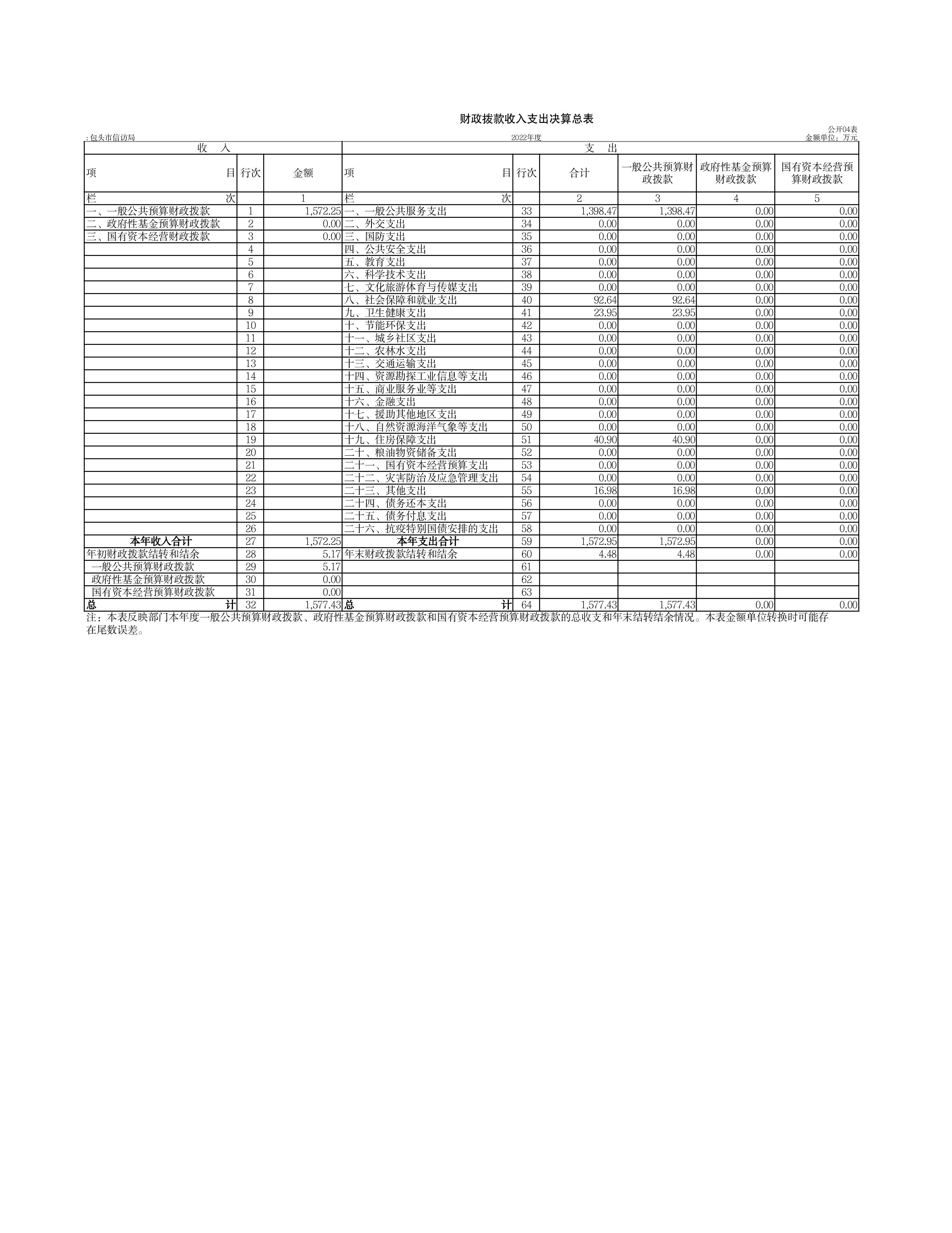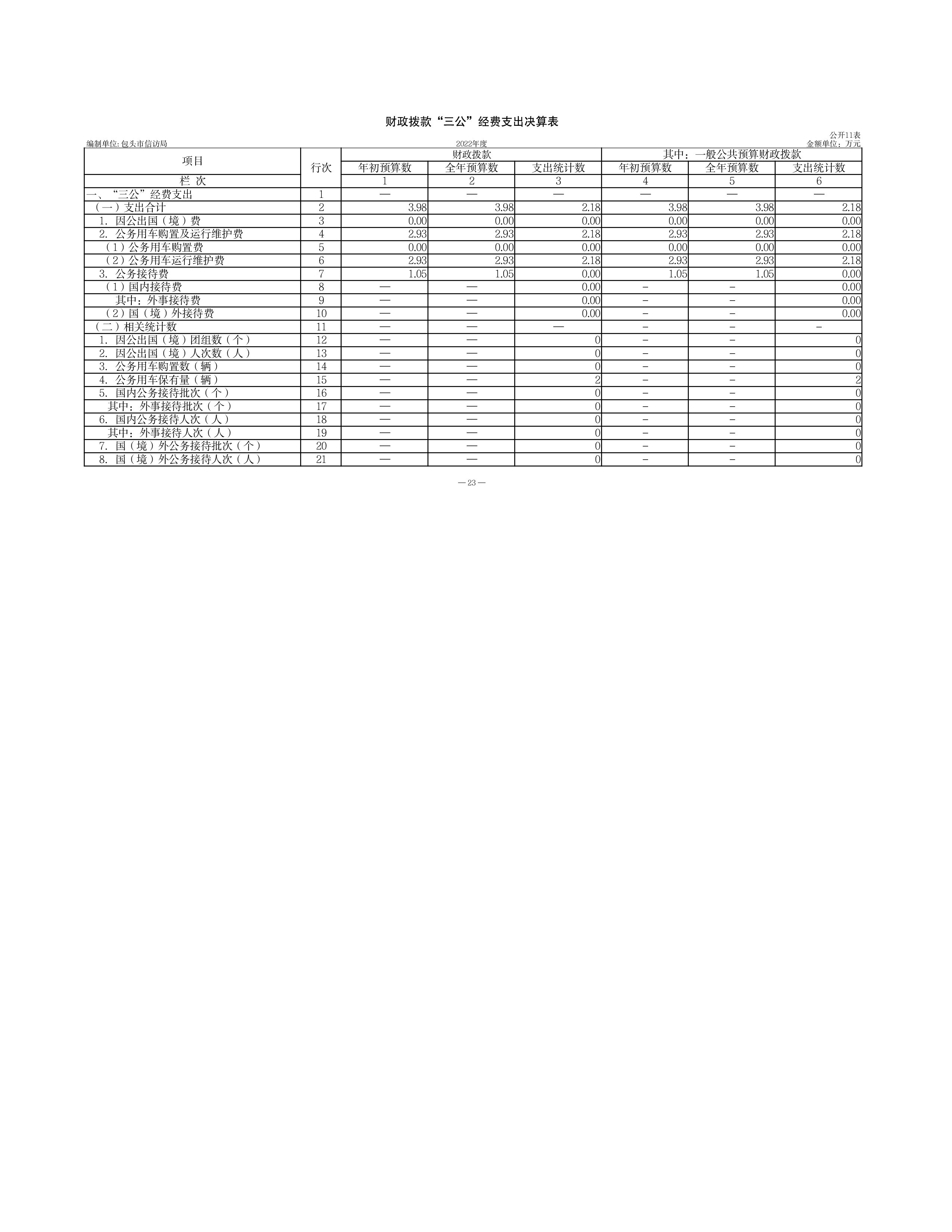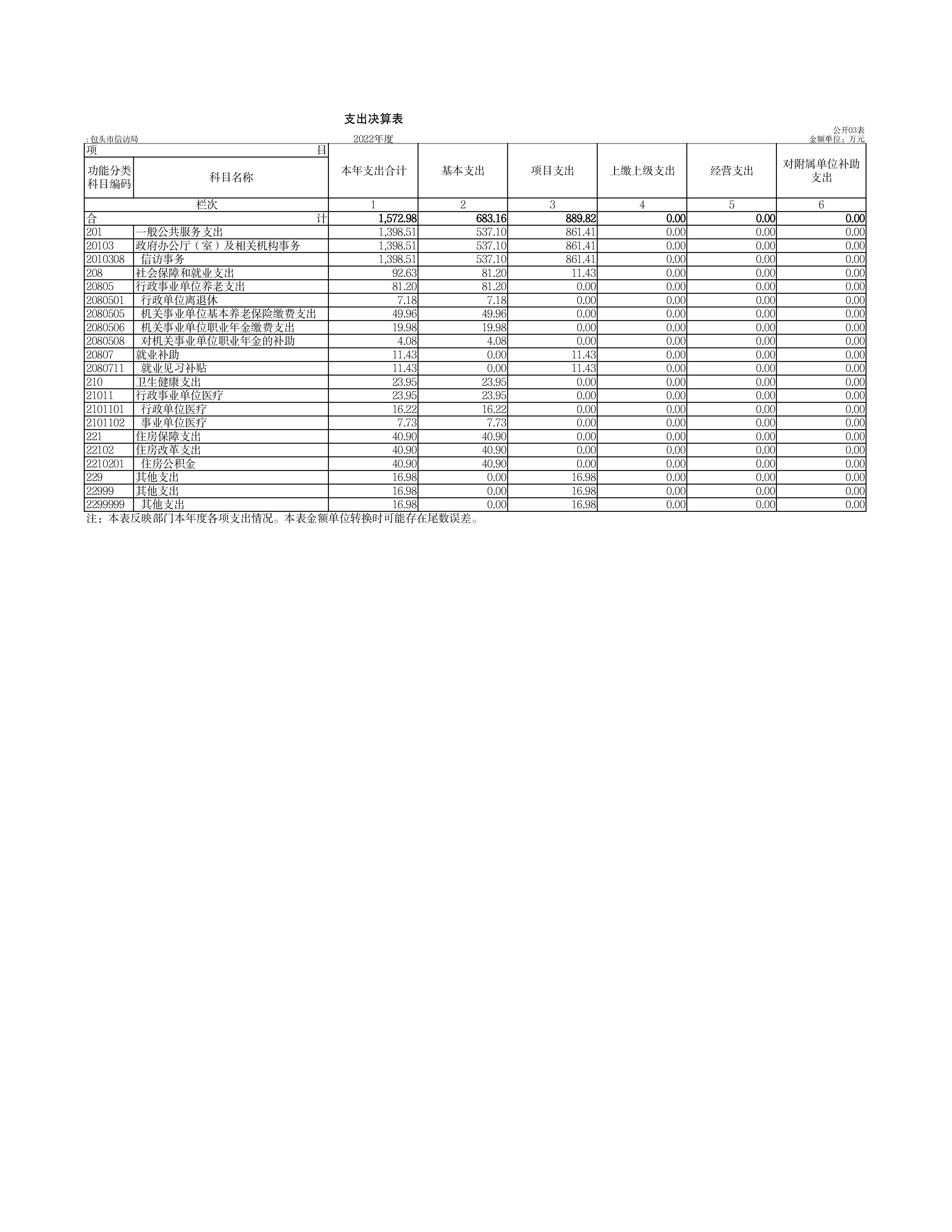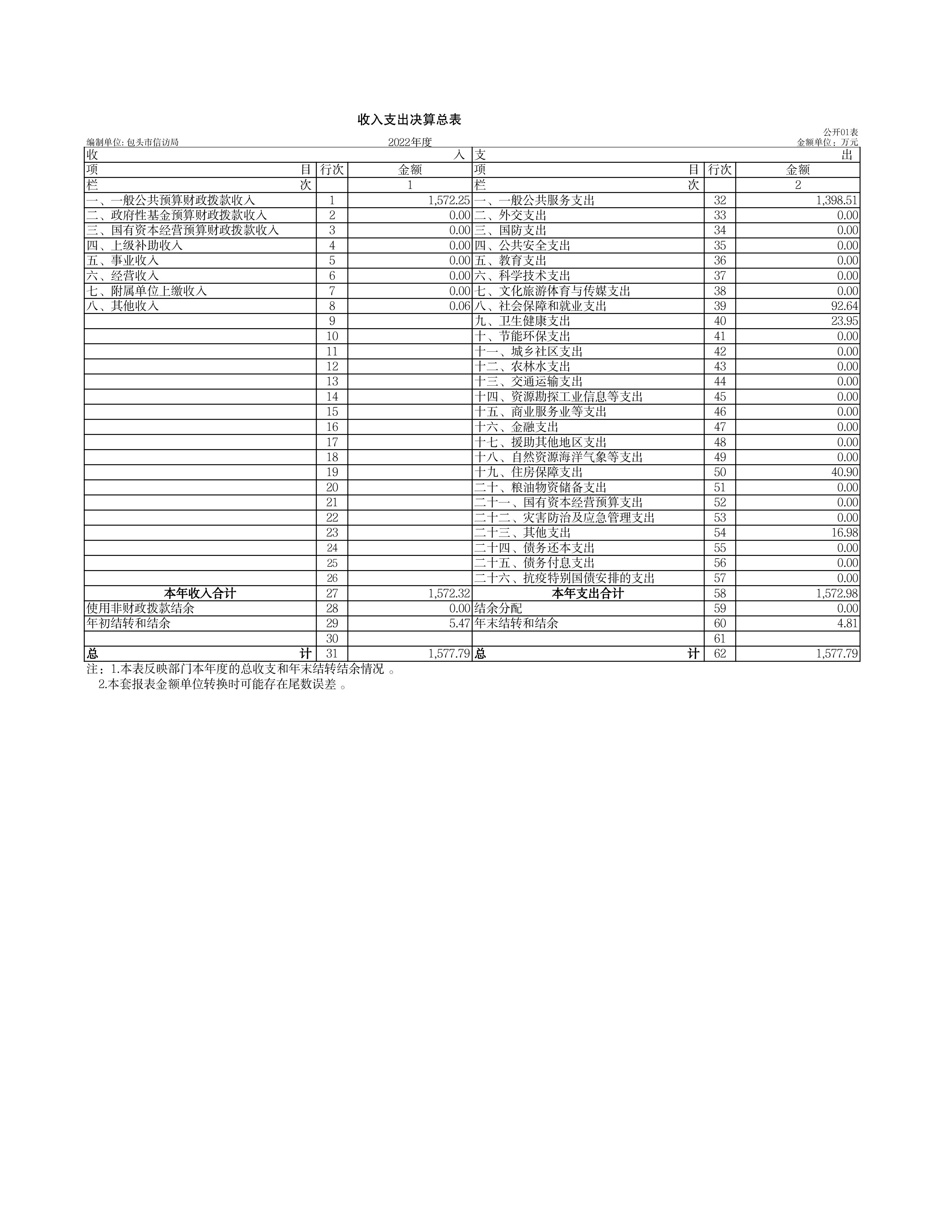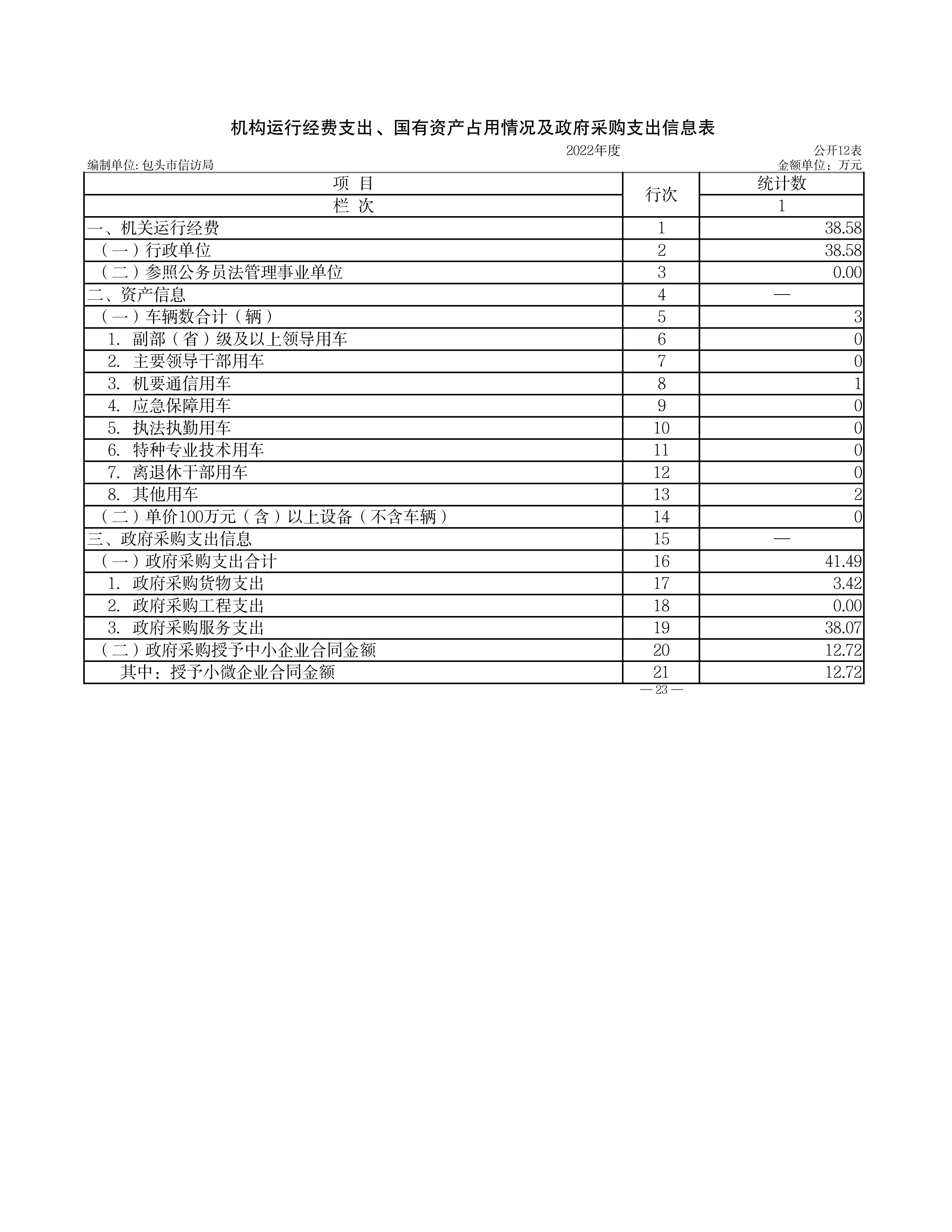 包头市信访局2022年度部门决算公开报告