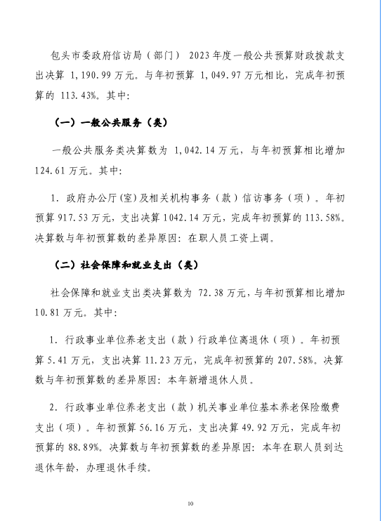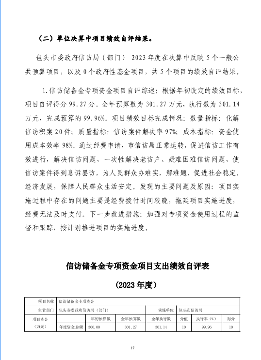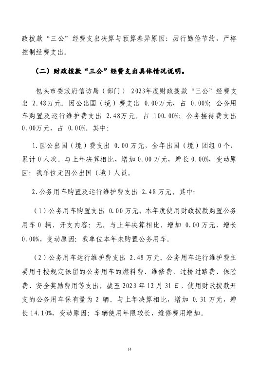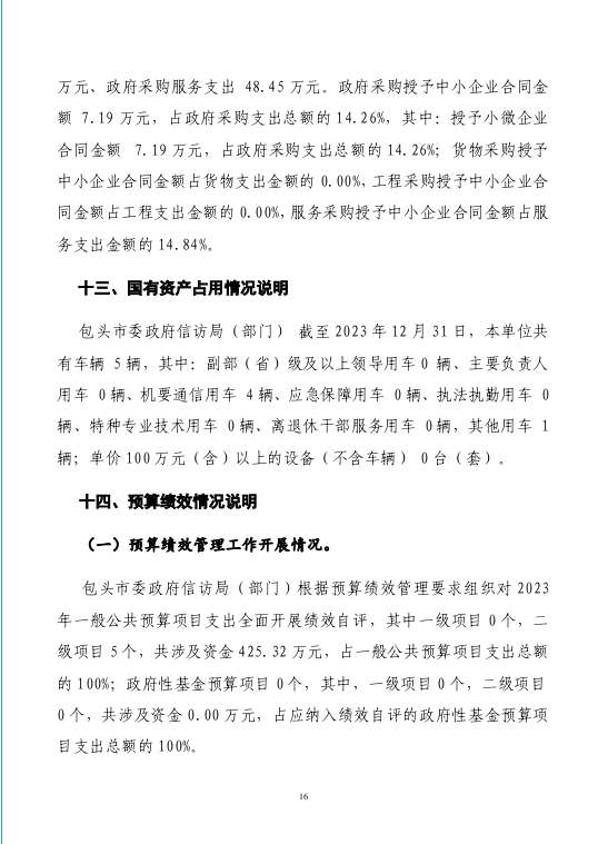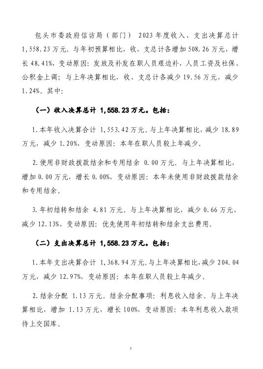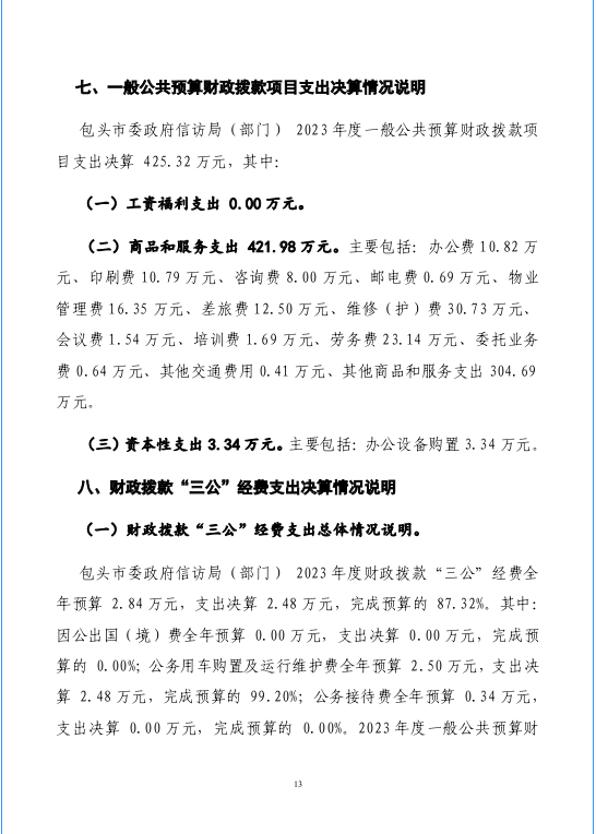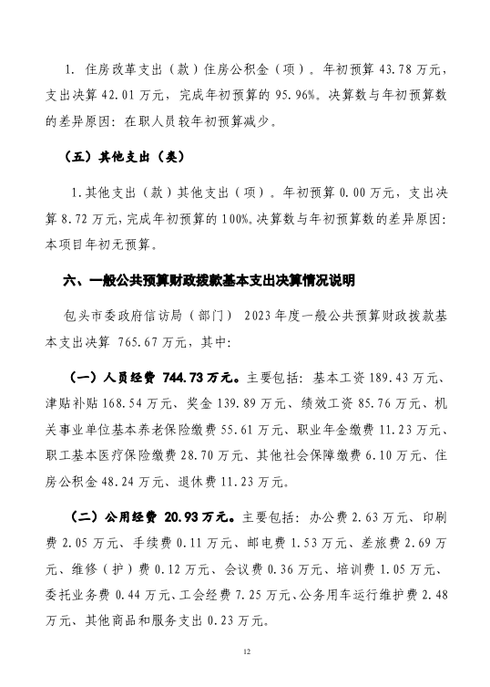 包头市信访局2023年度部门决算公开报告