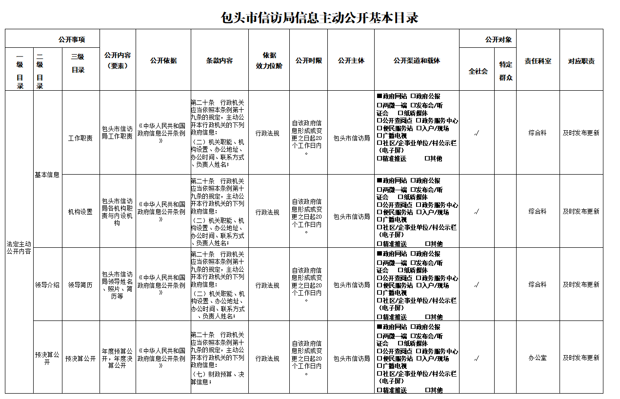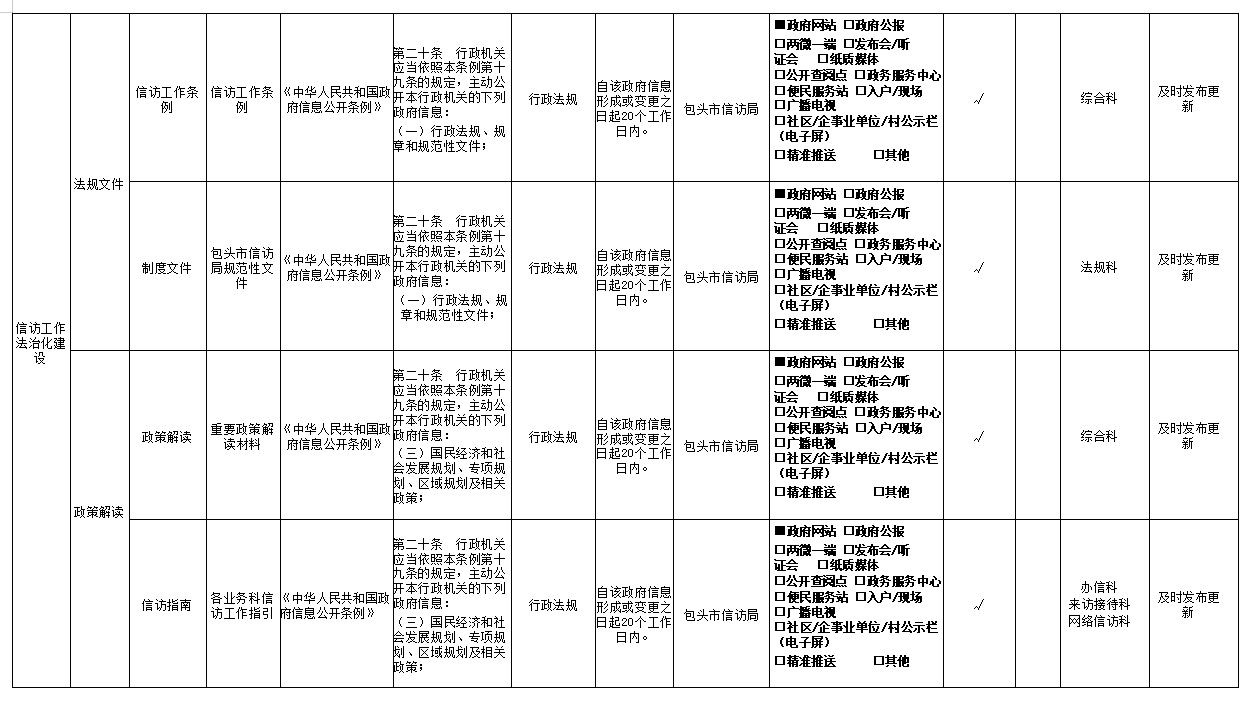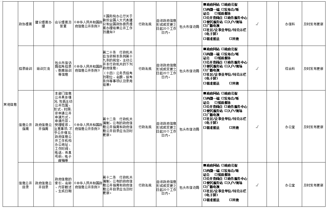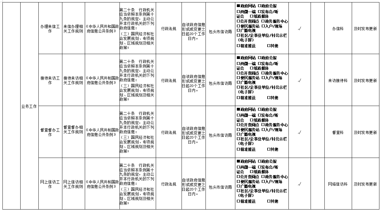 包头市信访局主动公开事项目录