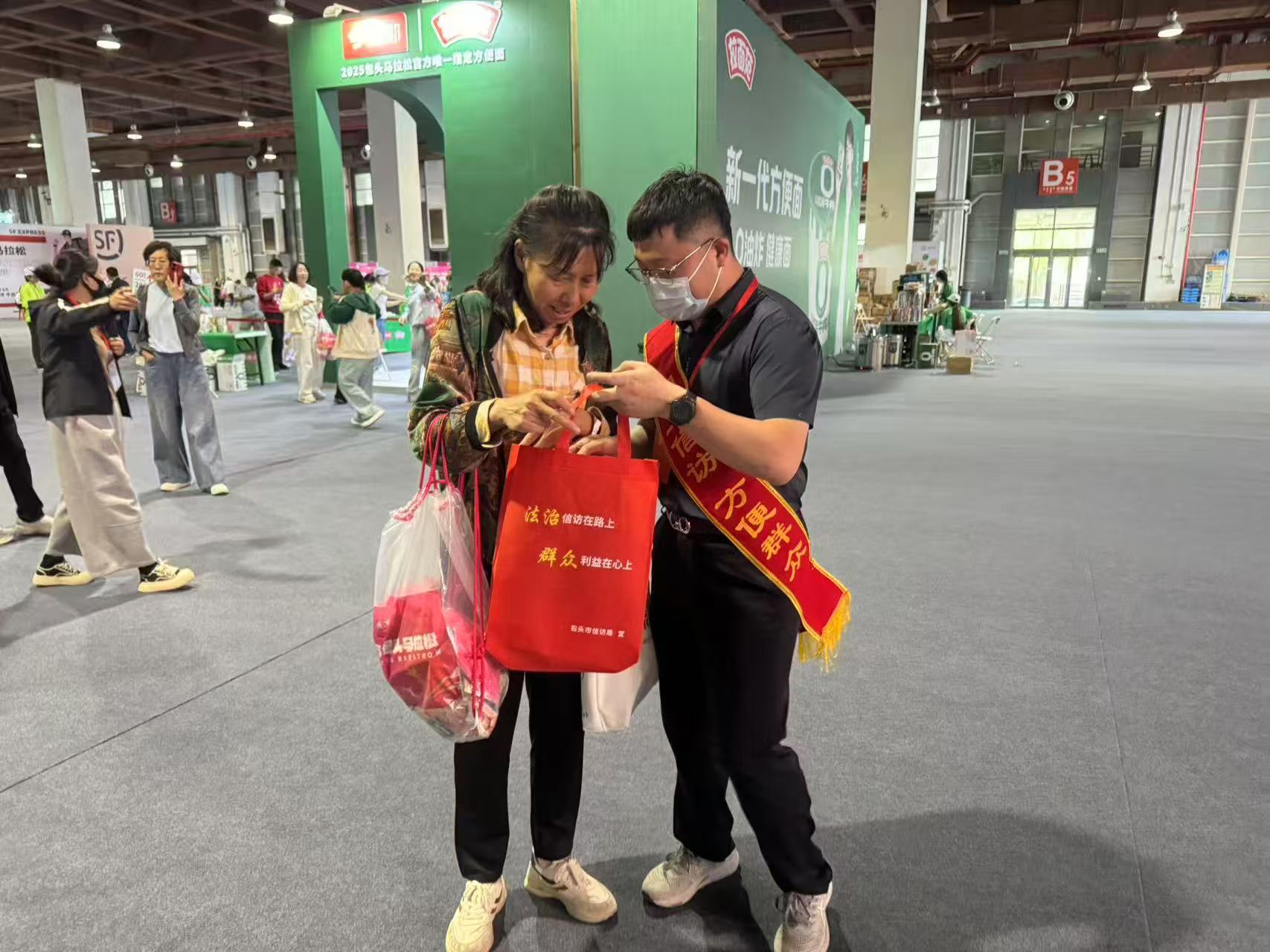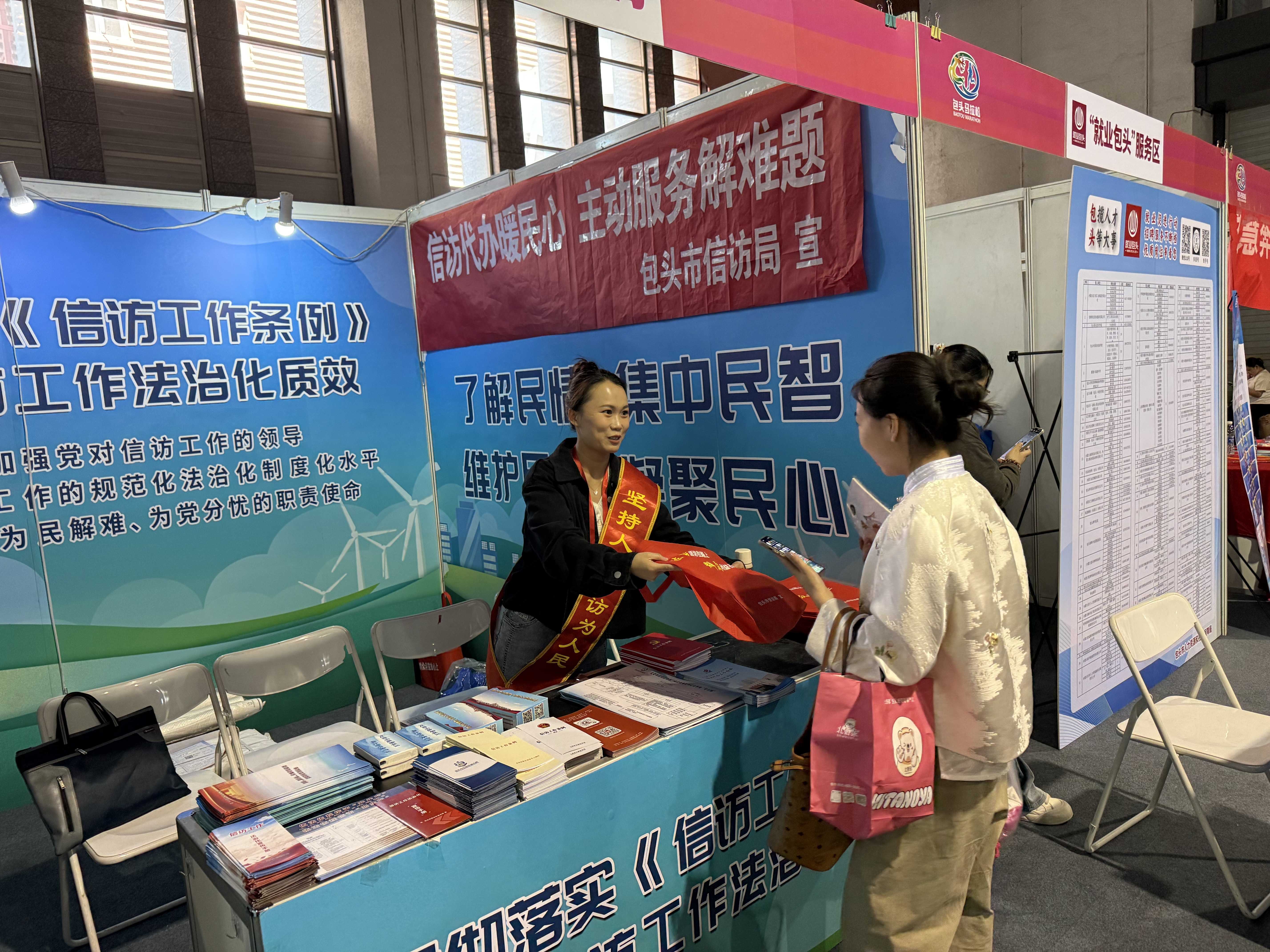 在《信访工作条例》施行三周年之际,包头市信访局结合自治区“信访工作法治化质效提升年”主题宣传月活动,创新宣传形式,借助2025包头国际马拉松赛事的全民关注度,于5月15日至17日赛事物资领取期间,在包头国际会展中心开展了一场别开生面的信访工作法治化宣传活动。